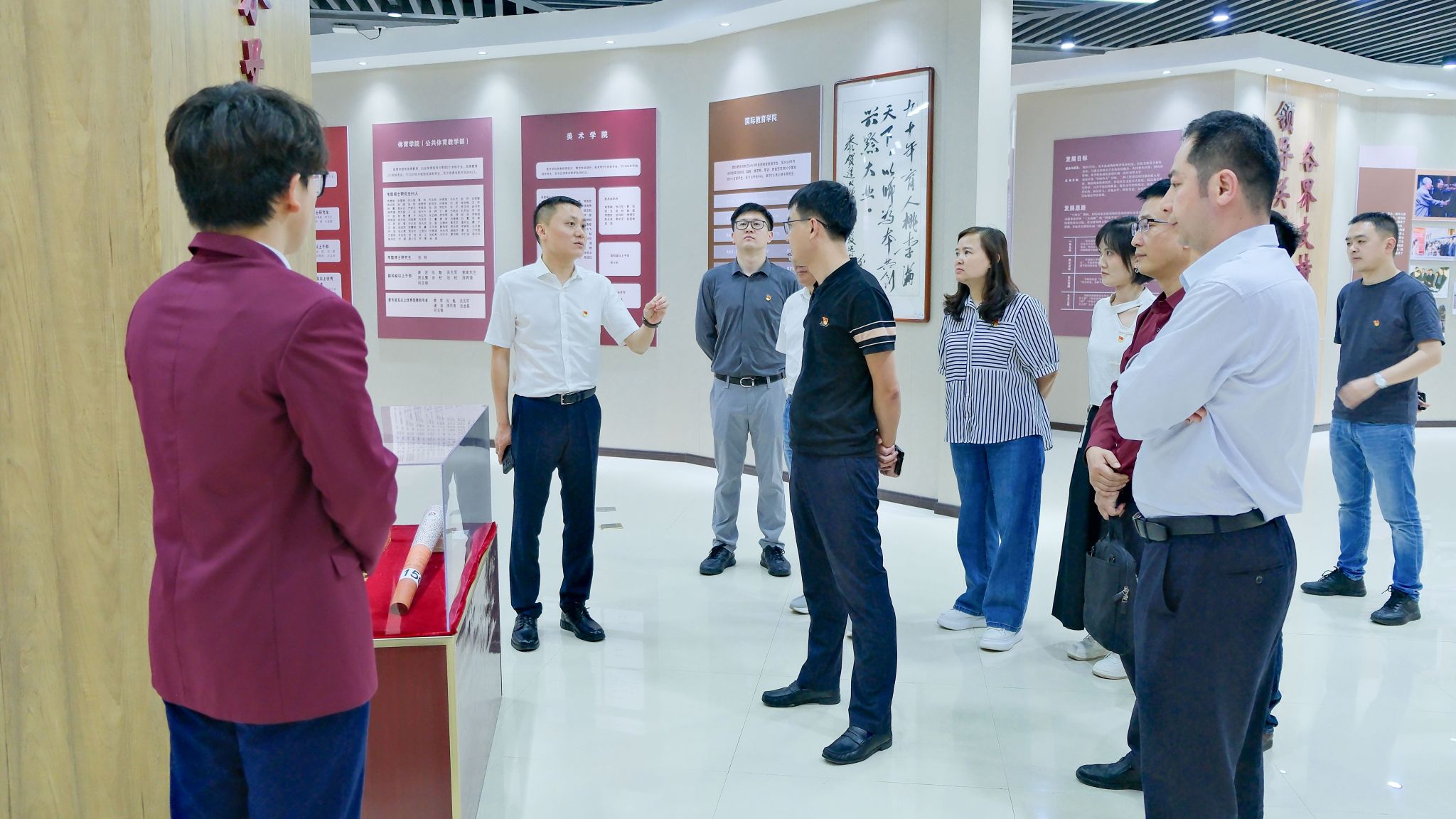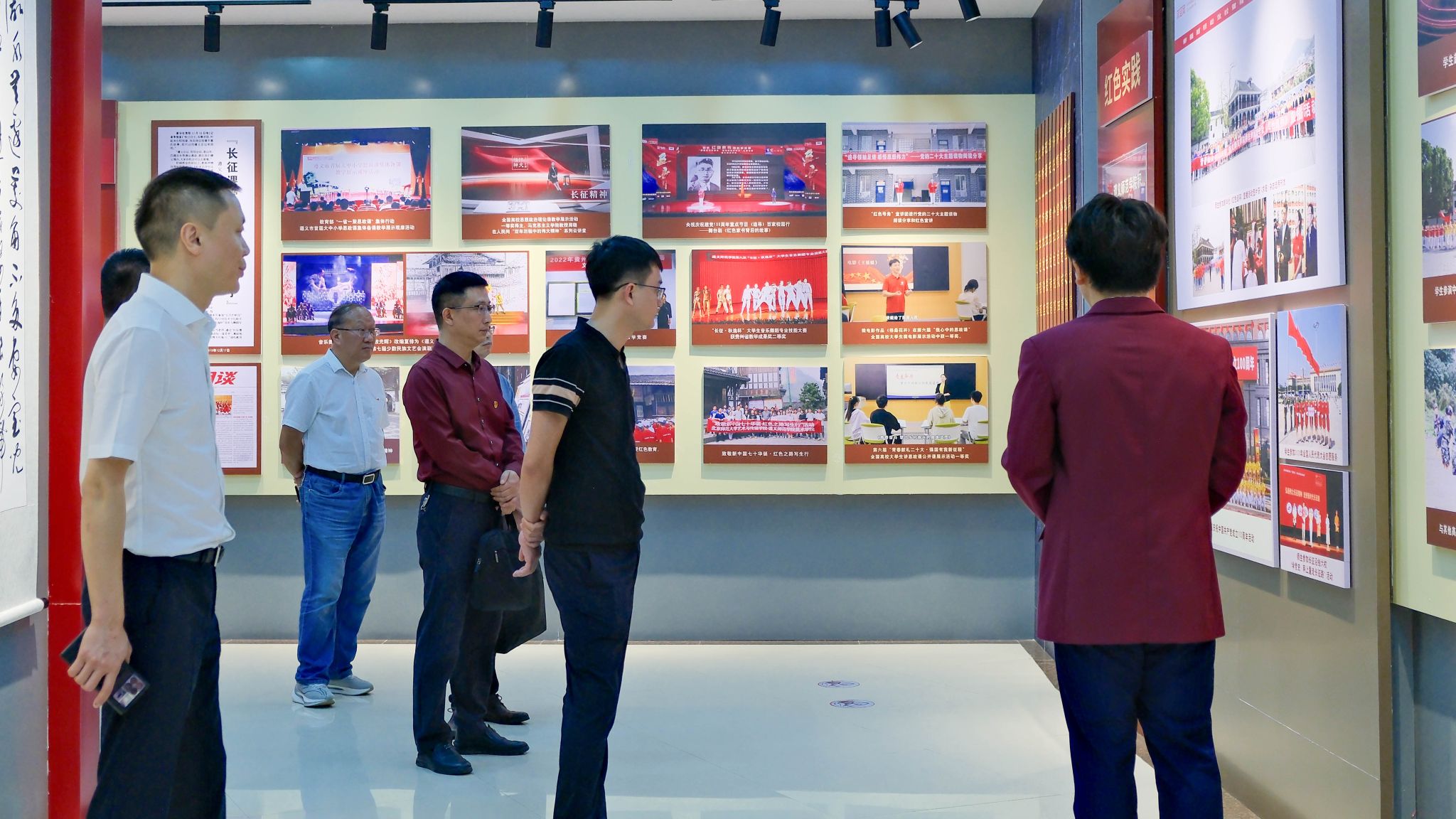遵义车务段党委书记、段长何飞龙一行在学校党政办公室班子的陪同下,先后到学校校史馆、红色文化馆进行参观,在解说员的引导下听取百年遵师故事,通过一幅幅图片、一段段文字了解了遵师的历史沿革、特色亮点、红色文化育人成果等情况。