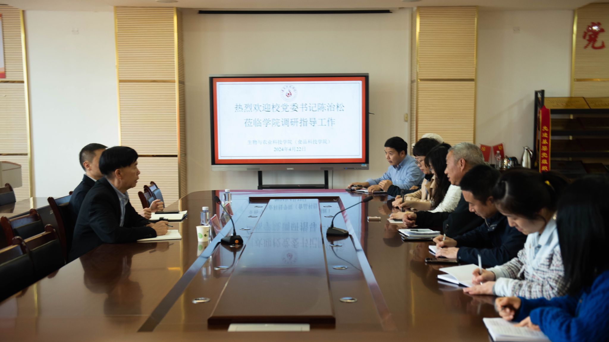 4月22日,学校党委书记陈治松到生物与农业科技学院调研,深入了解学院落实以高质量党建推动高质量发展、贯彻学校2024年“1234”工作思路情况,并对学院的发展进行了全面指导。