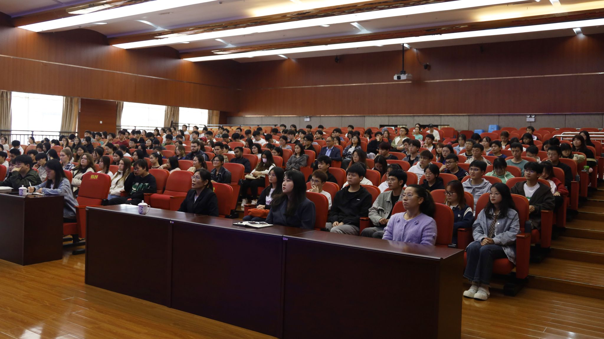 人文与传媒学院、管理学院、信息工程学院、音乐与舞蹈学院毕业生及其他年级学生代表,国际教育学院留学生代表,招生与毕业生就业指导处负责人到场聆听宣讲。(文/陈玉霞 图/雷绿芬)