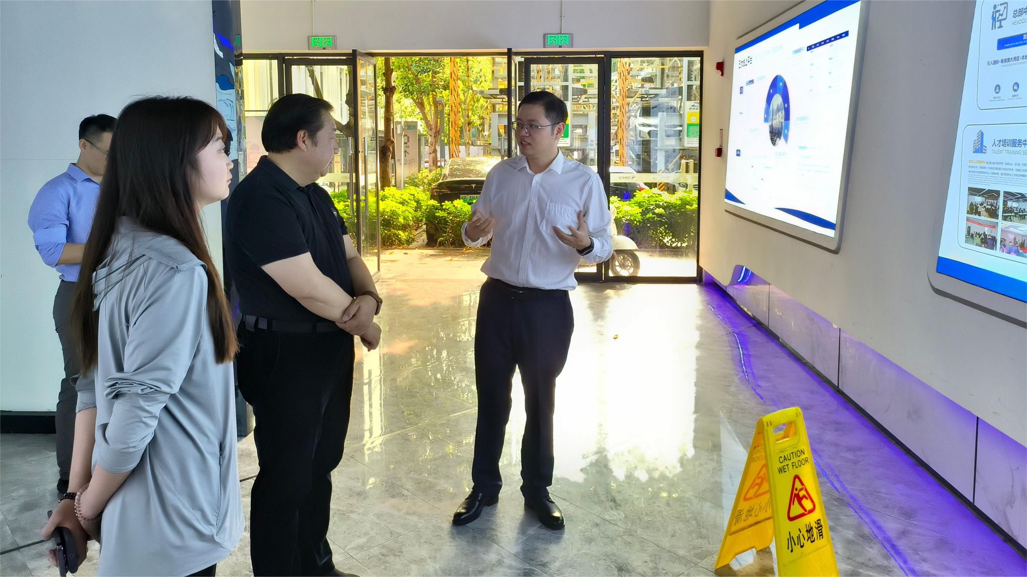 深圳盘古集团有限公司副总裁孔钊等带领胡贵勇一行参观了公司总部,并详细介绍了公司的发展历程和业务情况。