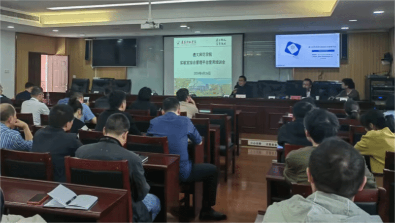 学校实验教学中心负责人主持培训会并表示,希望二级单位相关人员尽快熟悉学校实验室综合管理平台的使用功能,充分发挥平台的作用,提高实验室管理效率。