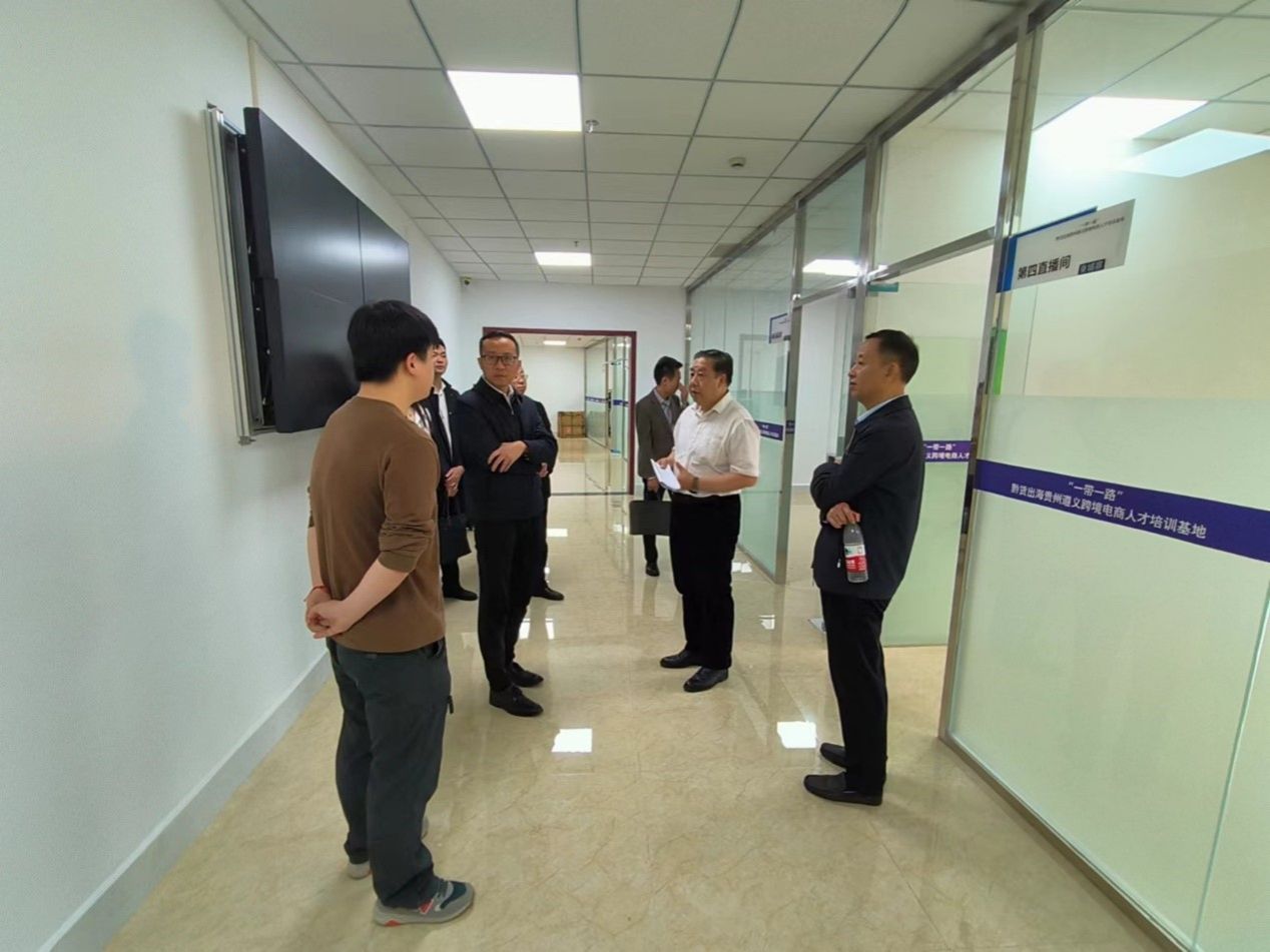 在基地,钟发辉一行参观了货品展示区、直播室、实验实训室,并对基地人才培养模式的创新给予了高度评价。