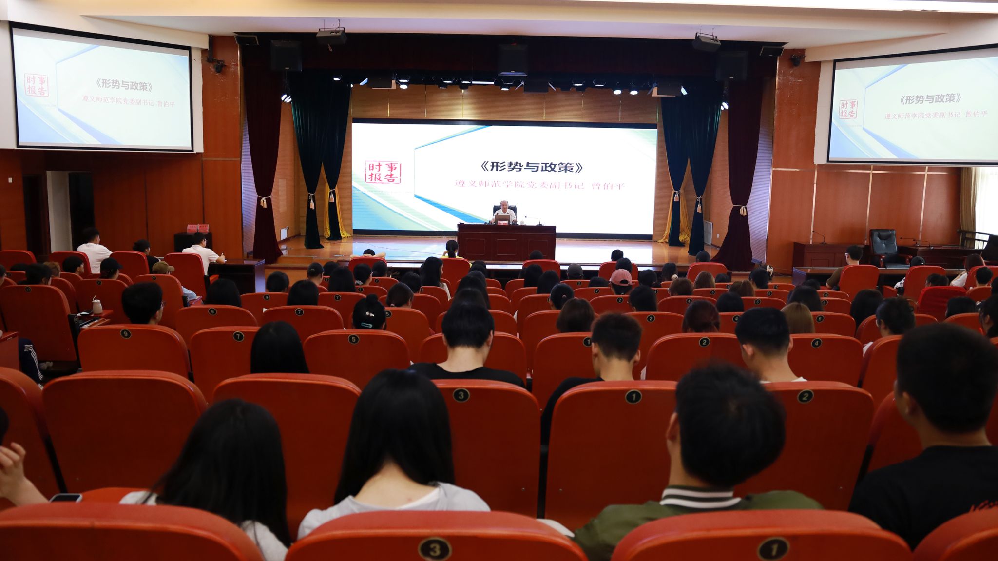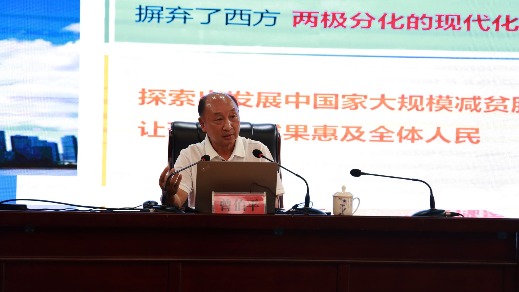 曾伯平围绕“拥抱新机遇,无畏新挑战”“全面推进美丽中国建设”“推进高水平对外开放”等多个方面向同学们讲述了什么是中国式现代化,如何从统筹兼顾、系统谋划、整体推进等方面推进中国式现代化。