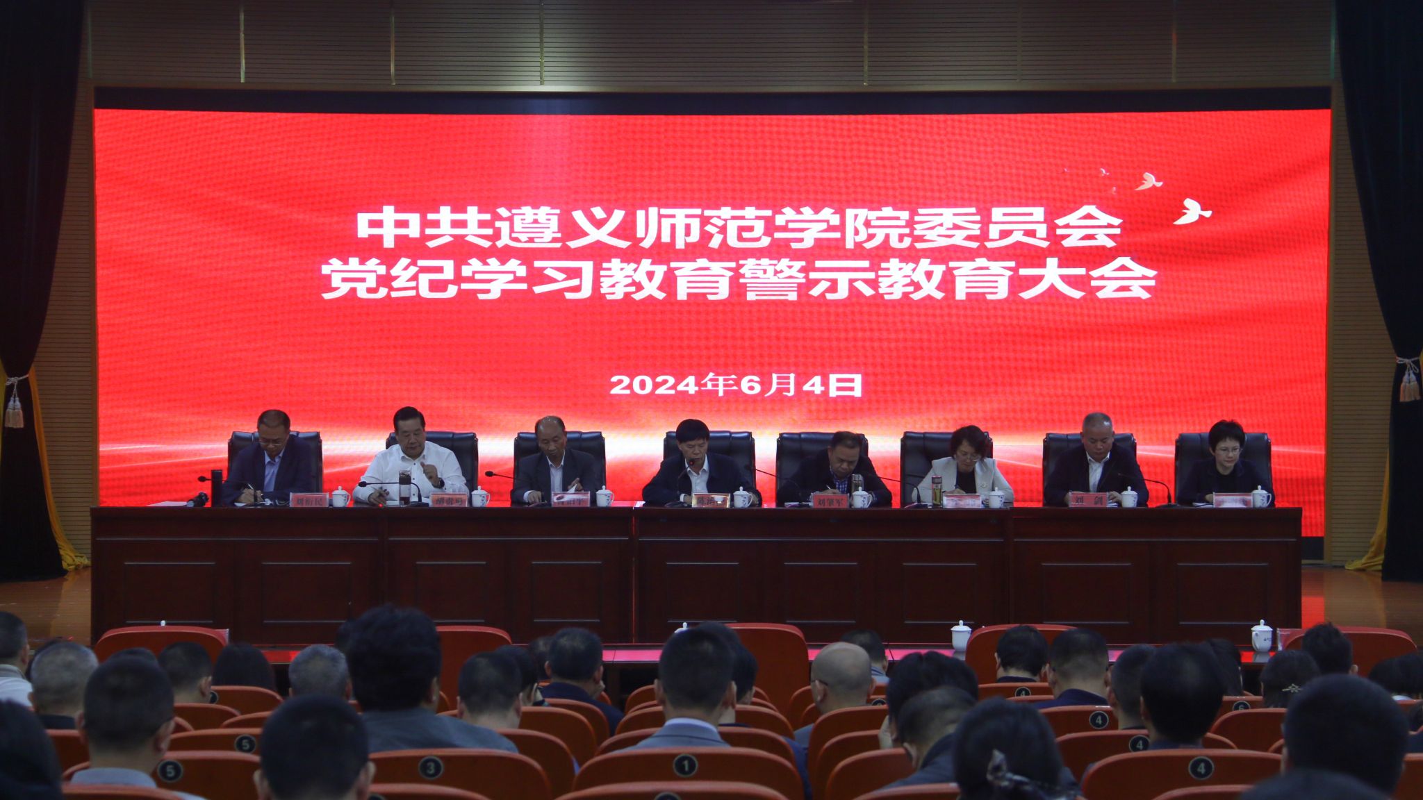 6月4日,中共beat365亚洲版官网委员会党纪学习教育警示教育大会召开,强调要深入学习贯彻习近平总书记关于全面加强党的纪律建设的重要论述和《中国共产党纪律处分条例》,以警示教育引导全校领导干部以案为鉴、以案明纪、以案促改,进一步筑牢信仰之基、绷紧纪律之弦、落实应尽之责、凝聚奋进之力,争做忠诚干净担当的好干部。