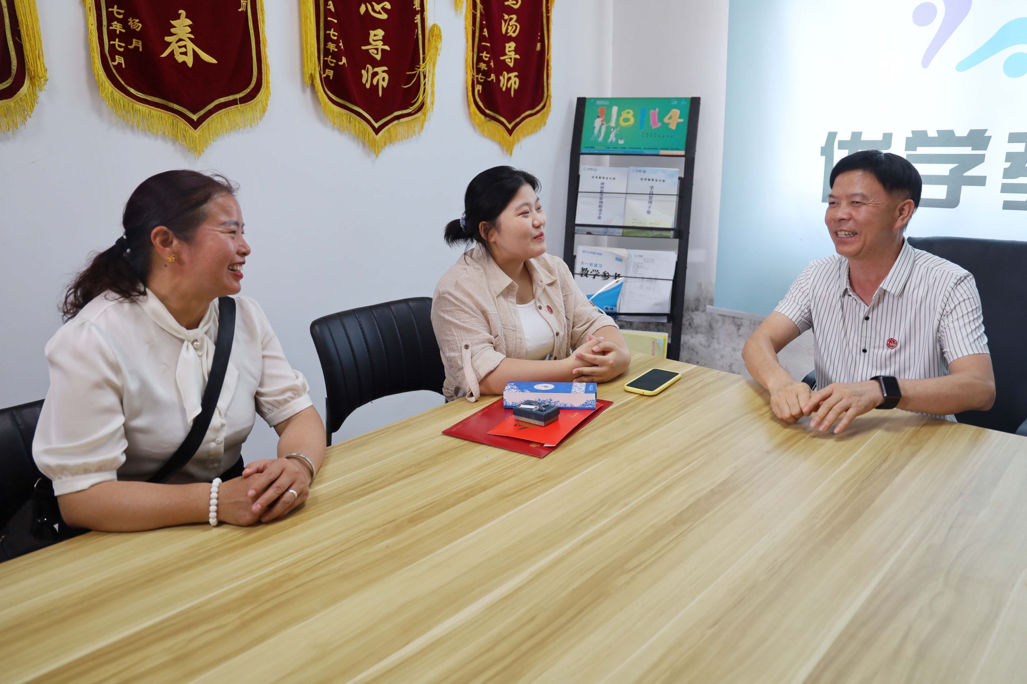 7月26日,beat365亚洲版官网党委书记陈治松一行驱车220余公里来到凯里,为2024级新生丁莹送上录取通知书、慰问金等,并为其佩戴校徽。