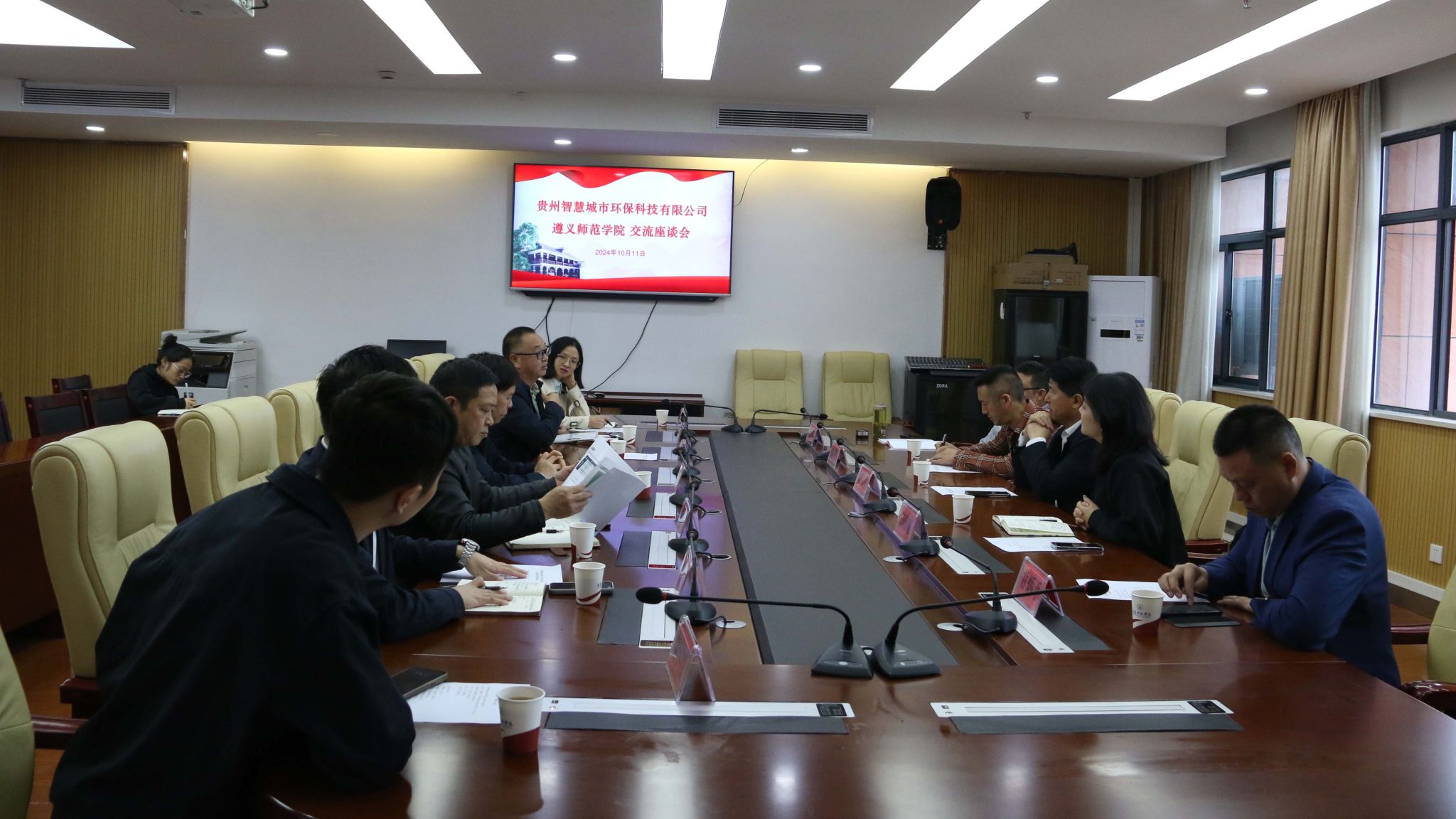 本网讯(文/张雕 图/刘家兵) 10月11日上午,贵州智慧城市环保科技(集团)有限公司董事长胡京平一行到beat365亚洲版官网交流,双方在行政楼516会议室召开座谈会。