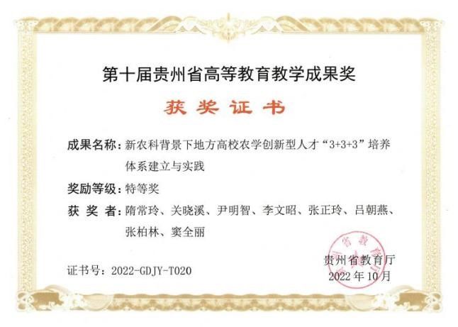 经过努力,“生物学”学科区域特色凸显,专业建设成果丰富。2023年“生物学”学科以“优秀”等次通过贵州省教育厅验收,并列入贵州省第二批省级一流学科(区域内一流学科)和“贵州省普通高等学校理工科学科专业建设强化行动”重点支持学科专业。现有农业专业硕士学位授权点。