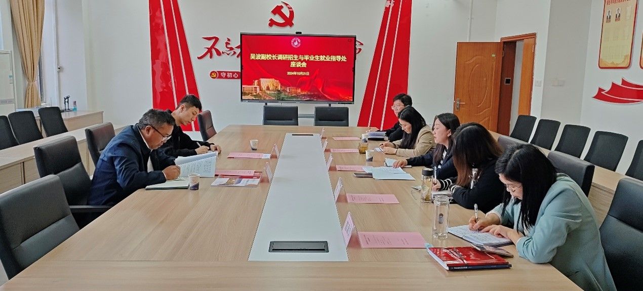 在调研座谈会上,吴波听取了招生与毕业生就业指导处处长李静的工作汇报,对近年来招生与毕业生就业指导处所做的工作和取得的成绩给予了充分肯定。