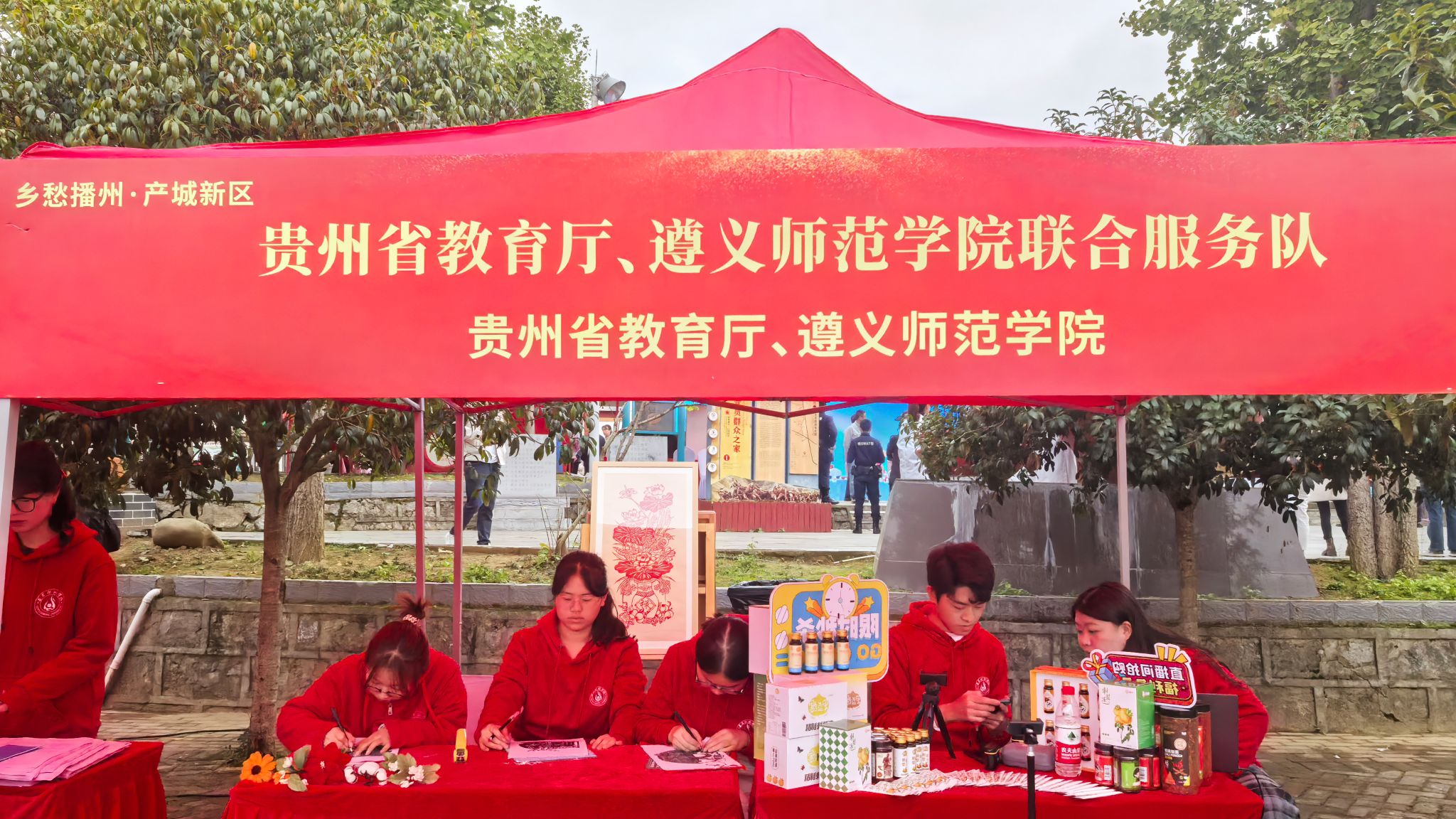 beat365亚洲版官网布展5个项目:贵州农产品直播,依托学校“一带一路”黔货出海贵州遵义跨境电商人才培训基地,以现场直播的方式,宣传推广贵州农产品;剪纸绘画书法手工艺品互动展示,教当地小学生剪纸、制作手工艺品等,体验传统文化的魅力;心理健康宣传咨询,向现场村民、学生发放心理健康知识宣传手册,开展心理健康团体辅导活动,增进大家对心理健康的正确认识;理论宣讲和推普活动,通过普通话绕口令活动、文言文朗诵等,宣讲党的创新理论,展示国家通用语言文字的魅力;家电维修及用电安全宣传,为村民免费维修吹风机等电器,科普电器及相关安全知识。