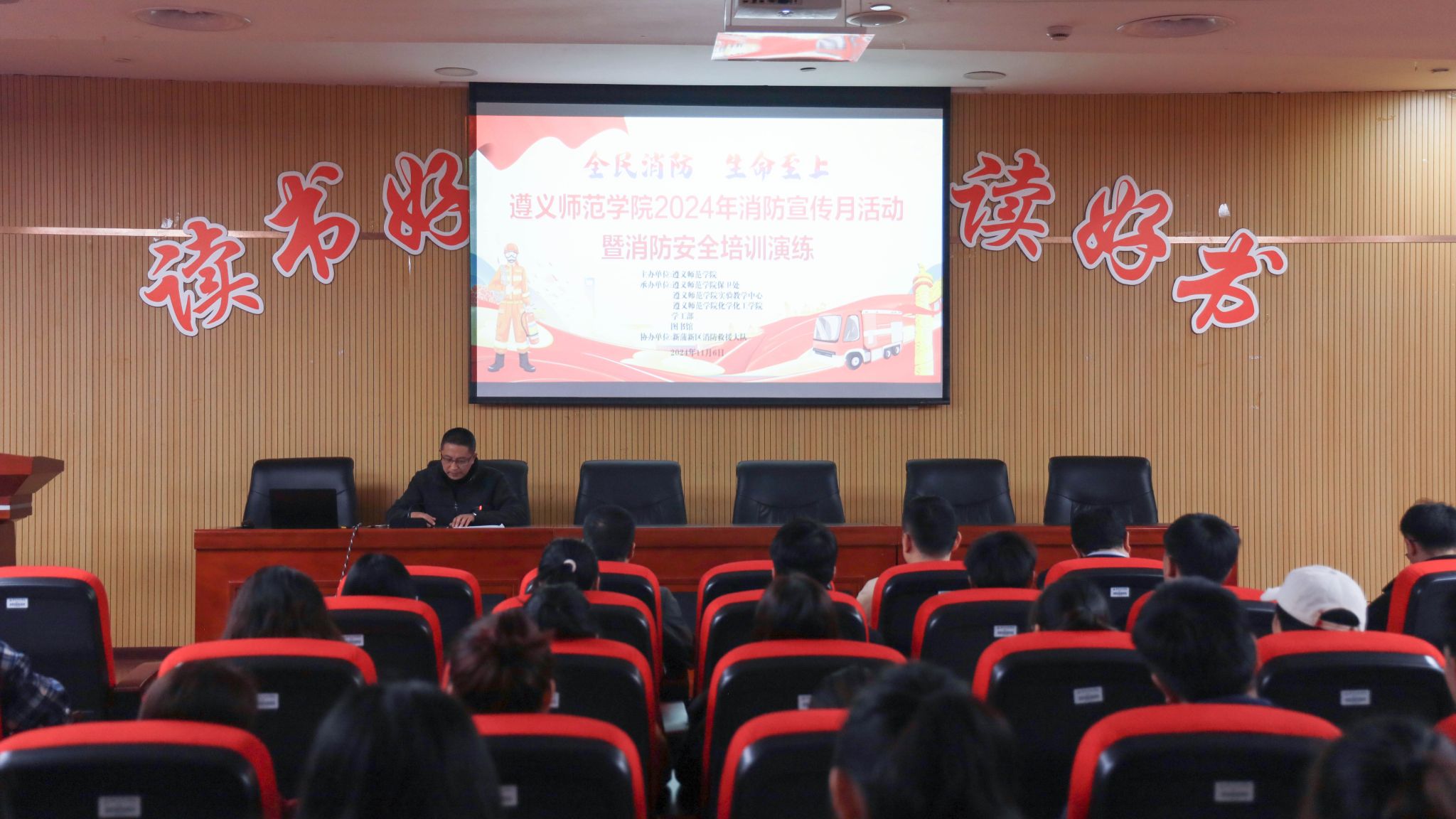 遵义市新蒲新区消防救援大队参谋罗艺受邀为师生作《全民消防 生命至上》校园消防安全培训专题讲座。讲座主要从典型火灾案例分析、火灾基础知识、消防法律法规解读、常见的火灾隐患和消防违法行为及防火、灭火、逃生知识应急措施等方面讲解了消防安全知识。