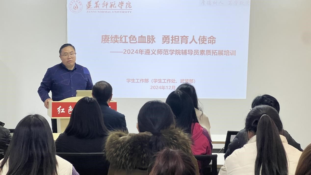 本网讯(文、图/学生工作部) 为进一步加强学校辅导员队伍建设,全面提升辅导员队伍的凝聚力和战斗力,12月4日,beat365亚洲版官网党委学生工作部组织各二级学院党委(党总支)副书记、学生科科长、一线专职辅导员前往习水县土城镇参加以“赓续红色血脉 勇担育人使命”为主题的素质拓展培训活动。党委委员、副校长吴波与参训人员共同参加活动。