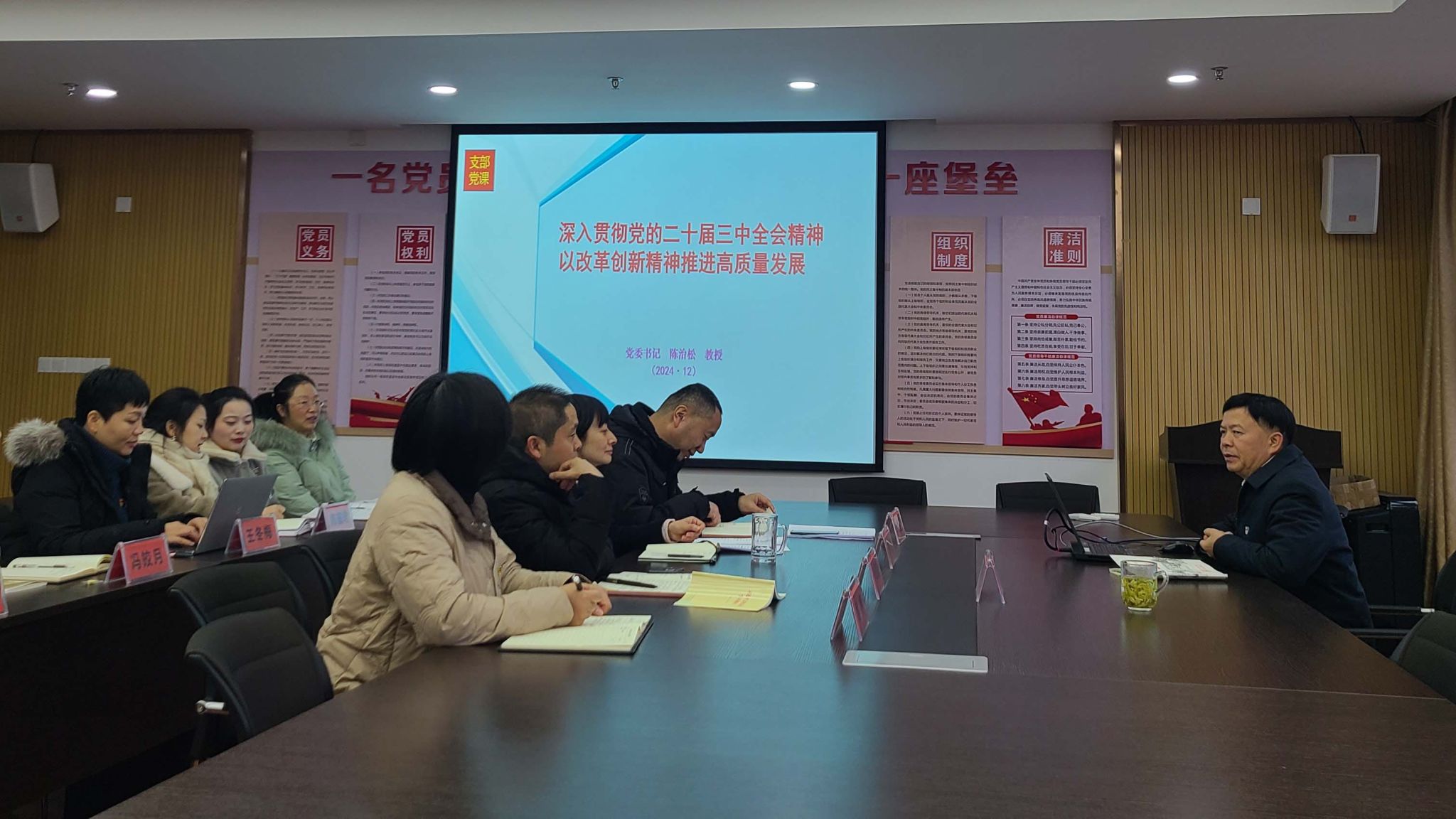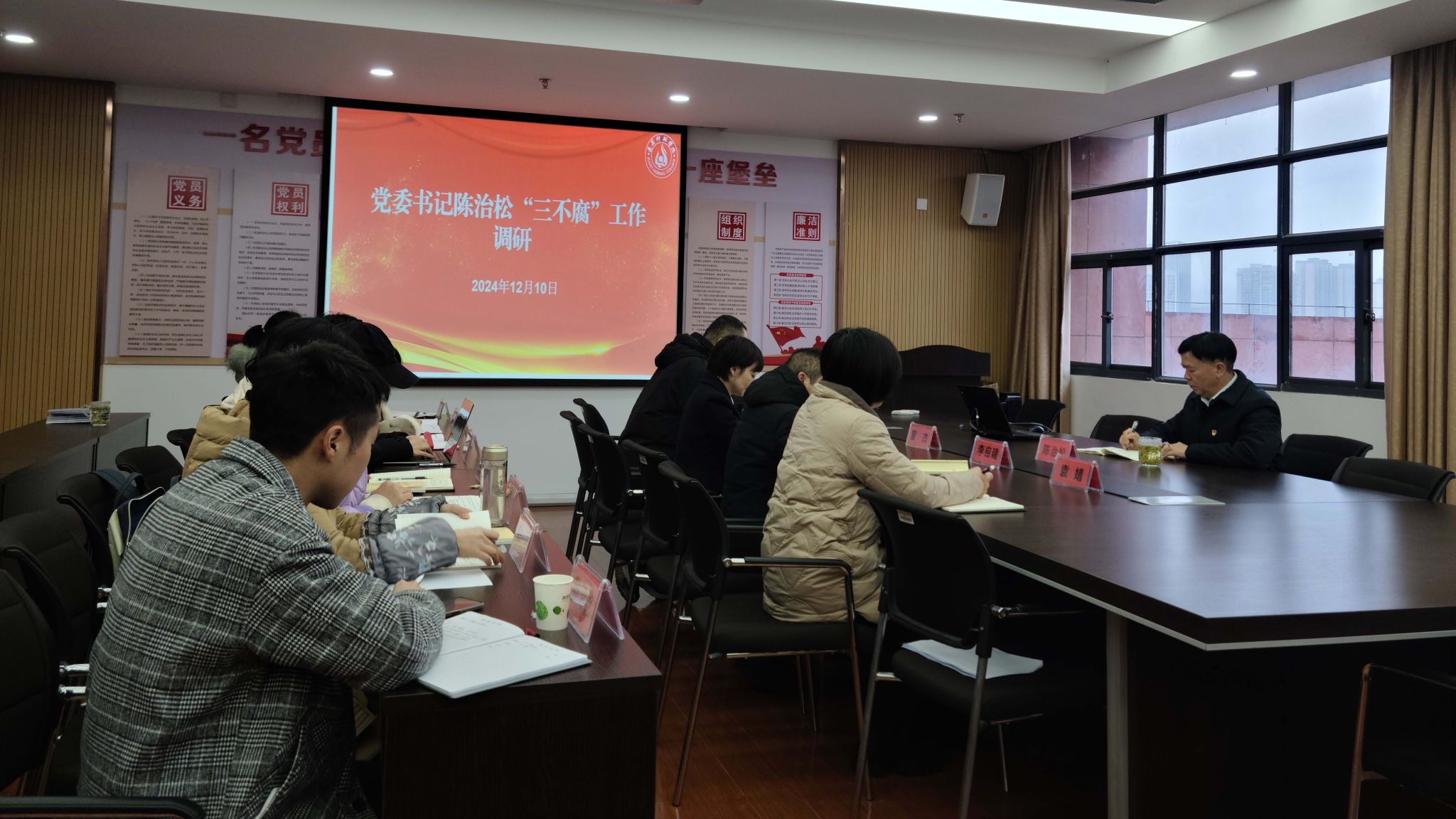 本网讯(文、图/皮奔) 12月10日,学校党委书记陈治松到马克思主义学院教工第一党支部宣讲党的二十届三中全会精神并开展“三不腐”调研。
