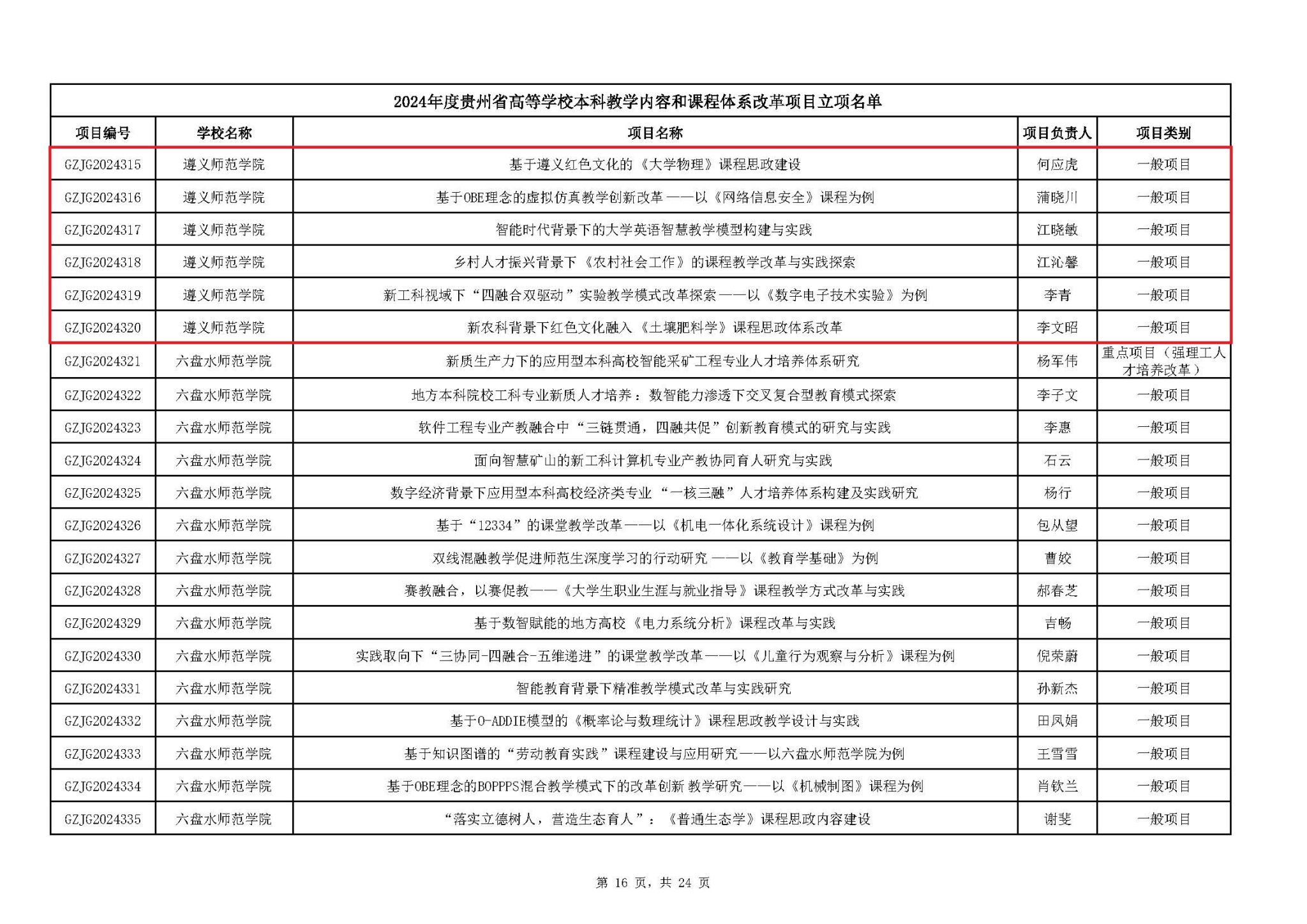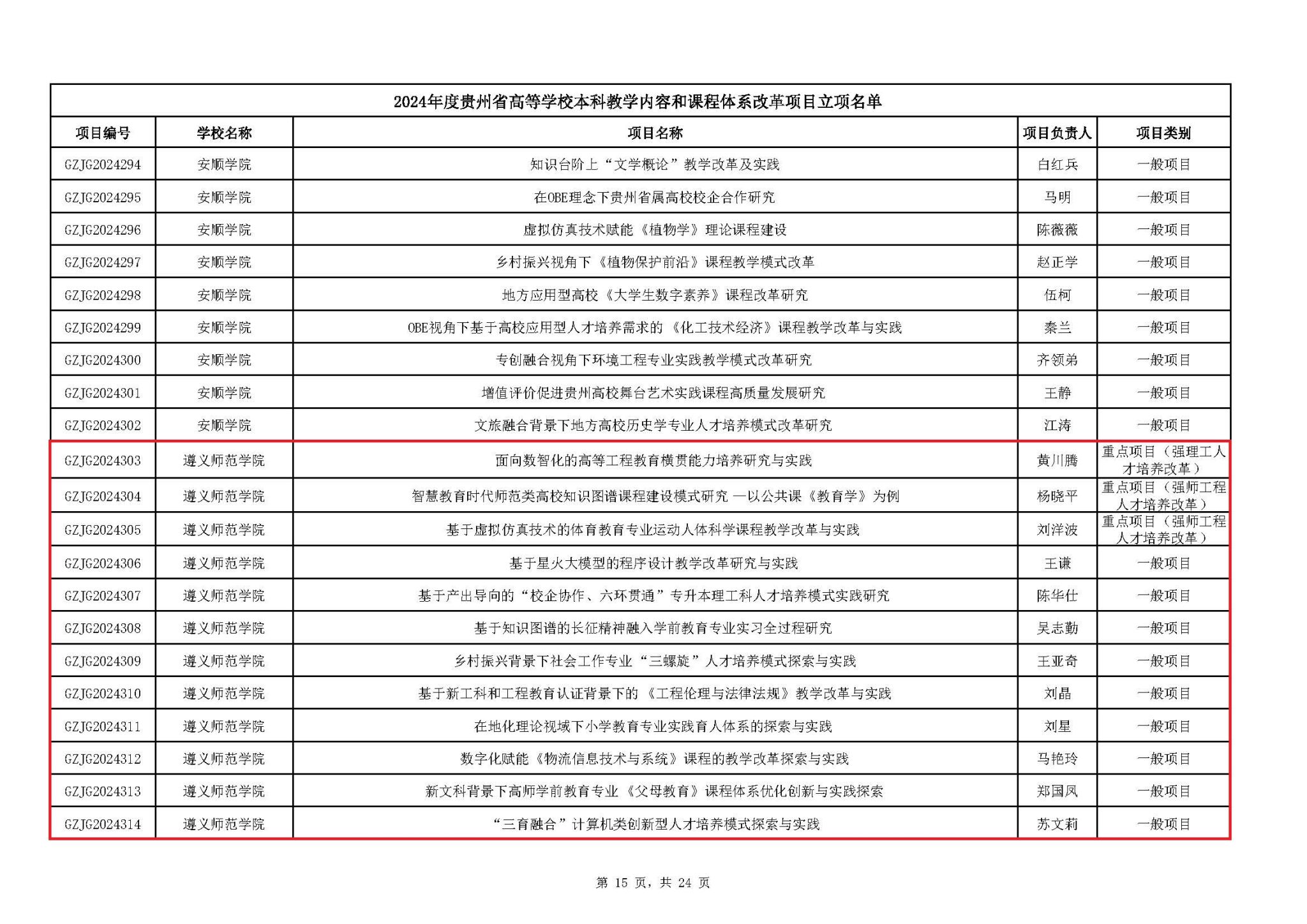 近日,省教育厅公布了2024年度省级本科教学内容和课程体系改革项目立项名单。beat365有18个项目获得立项,其中有3个重点项目,分别是强理工人才培养改革重点项目“面向数智化的高等工程教育横贯能力培养研究与实践”(负责人:黄川腾)、强师工程人才培养改革重点项目“智慧教育时代师范类高校知识图谱课程建设模式研究——以公共课《教育学》为例”(负责人:杨晓平)、强师工程人才培养改革重点项目“基于虚拟仿真技术的体育教育专业运动人体科学课程教学改革与实践”(负责人:刘洋波)。