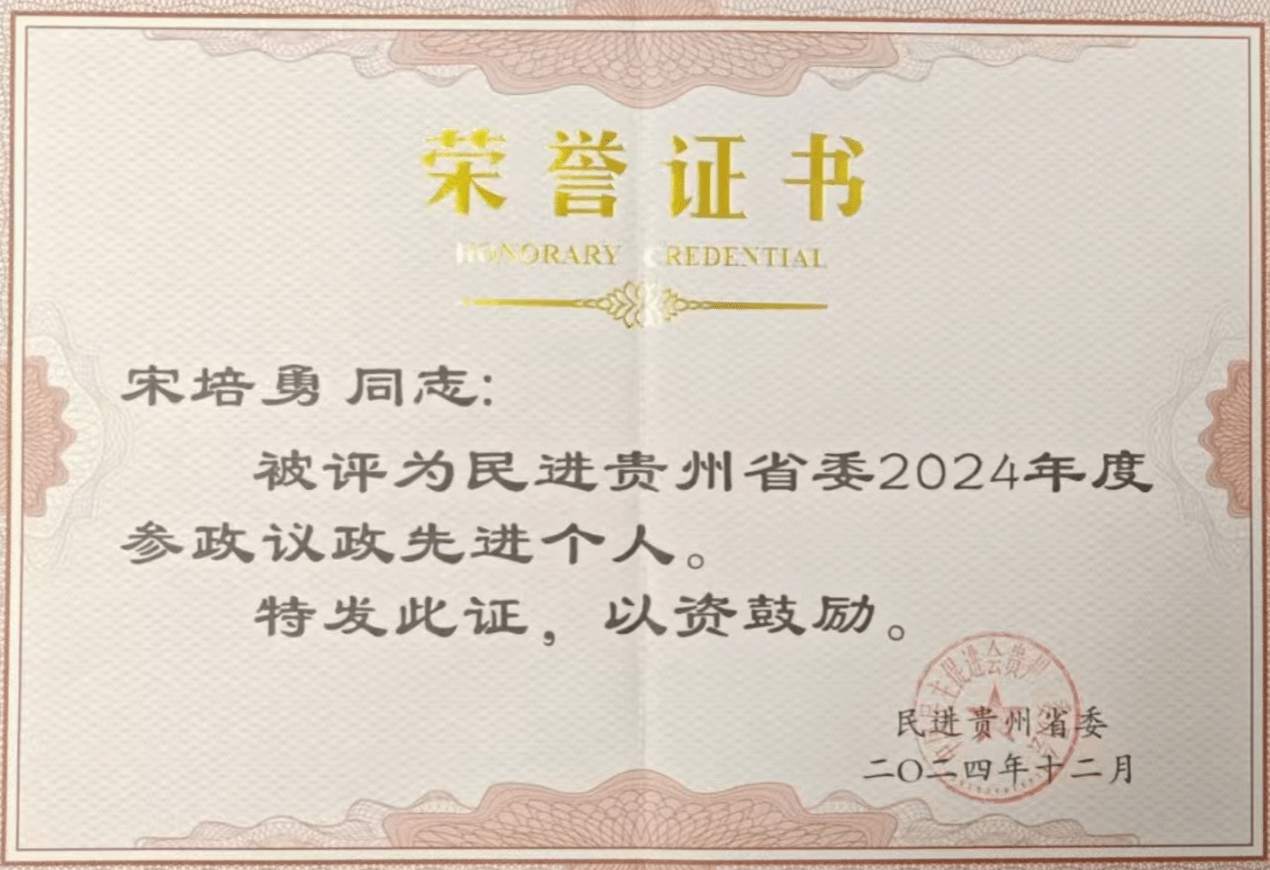 民进会员宋培勇负责的民进贵州省委重点课题“培育树莓产业助力石漠化治理”形成的调研报告《培育树莓产业助力石漠化治理研究报告》获省委领导批示;课题成果获评民进贵州省委2024年度参政议政优秀成果一等奖。