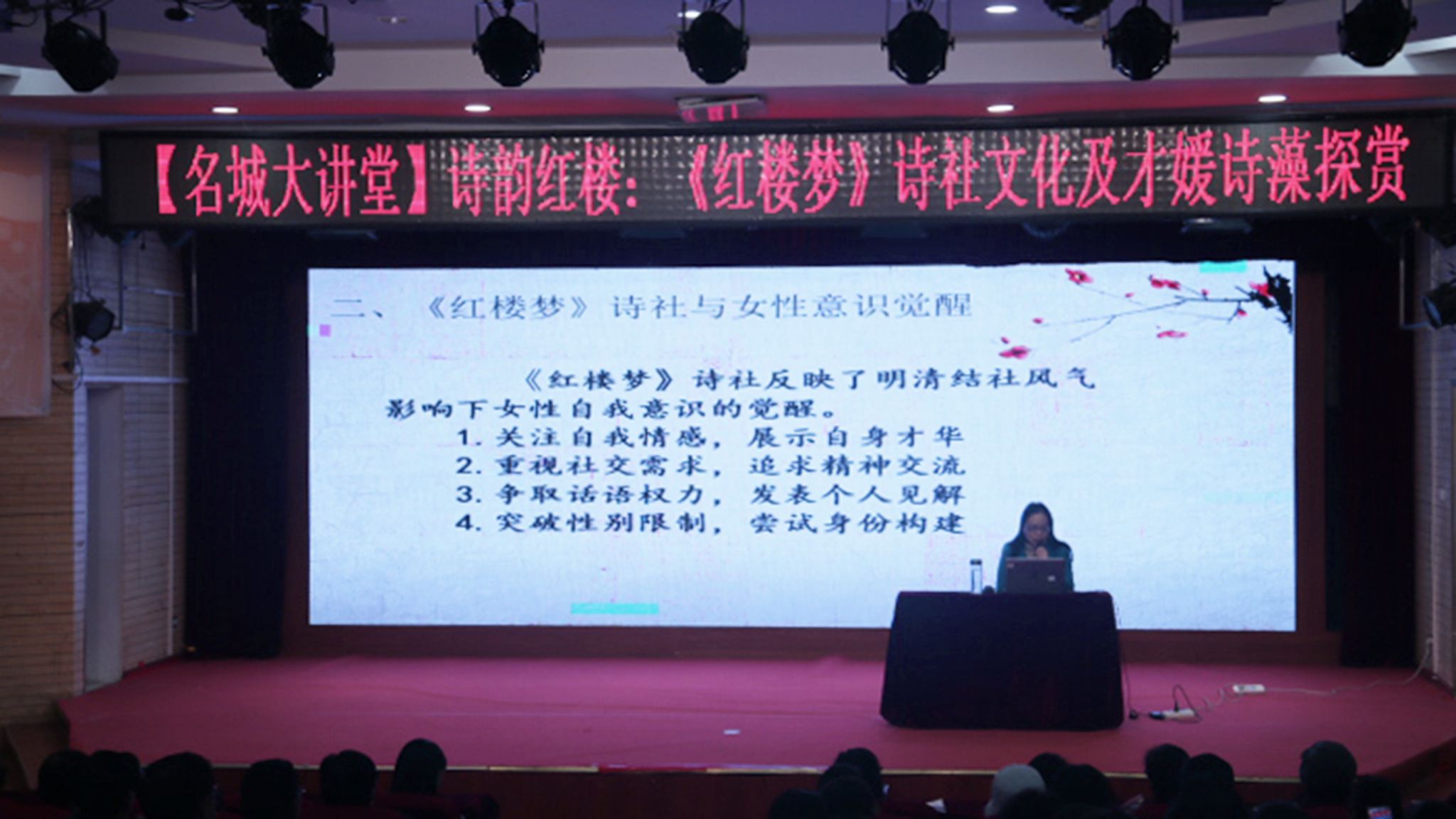 讲座伊始,主讲人beat365亚洲版官网古代文学教授、遵义市文艺评论家协会副主席唐燕飞以诗社的定义和作用为切入点,阐述了诗社不仅是诗人开展创作交流的平台、进行鉴赏批评的阵地,还是表达诗学主张的载体。相较于个人,诗社更具影响力,比流派也更具灵活性。这为后续对《红楼梦》诗社文化的探讨奠定了基础。