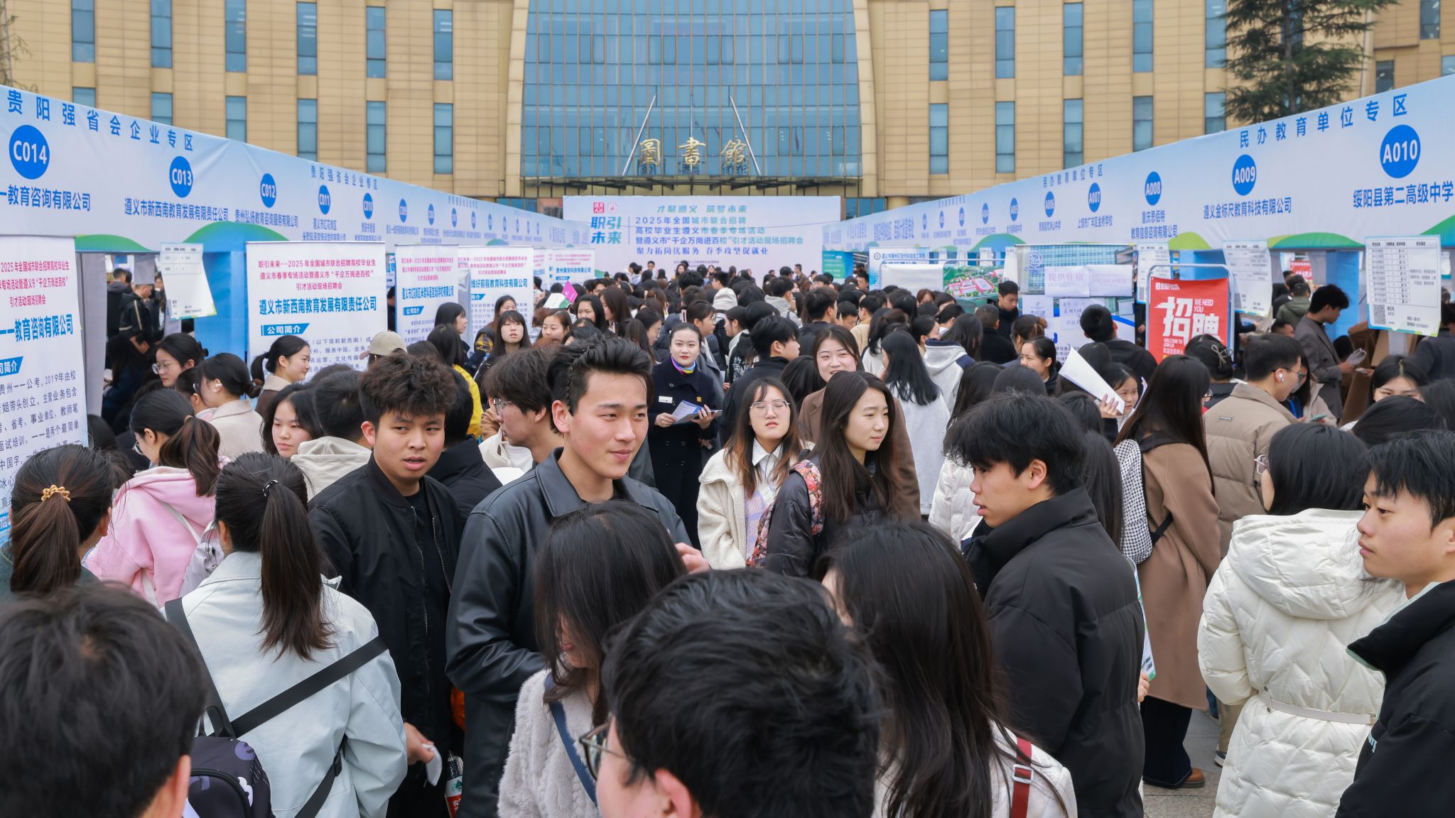3月21日,学校在星空广场举办“职引未来——2025年全国城市联合招聘高校毕业生遵义市春季专场活动”暨遵义市“千企万岗进百校”引才活动现场招聘会,AI专区吸引了众多求职者关注。