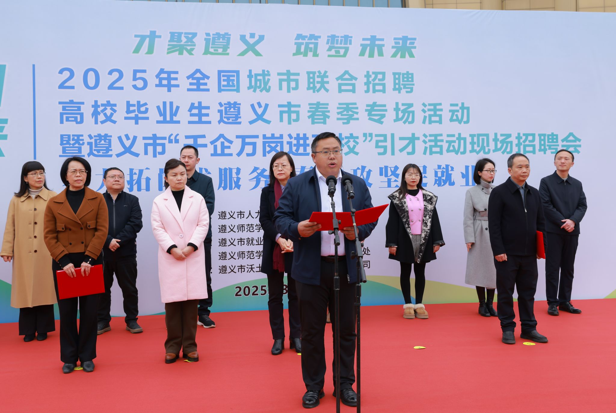 遵义市人力资源和社会保障局党组成员、市就业局局长贺孝循在开幕式上介绍了遵义市留才、引才战略行动及配套政策,呼吁用人单位和毕业生积极沟通对接,共同促进遵义市高质量发展。
