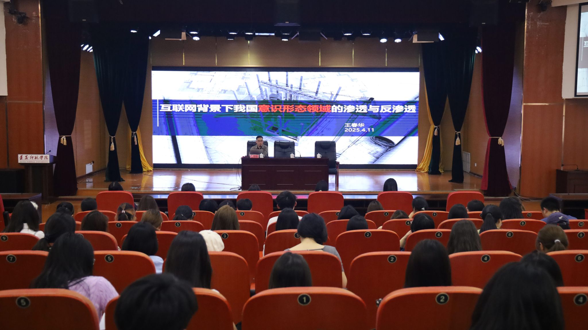 学校党委委员、宣传部部长王春华以《互联网背景下我国意识形态领域的渗透与反渗透》为题作培训,剖析了当前意识形态领域面临的风险与挑战,提出了应对措施。