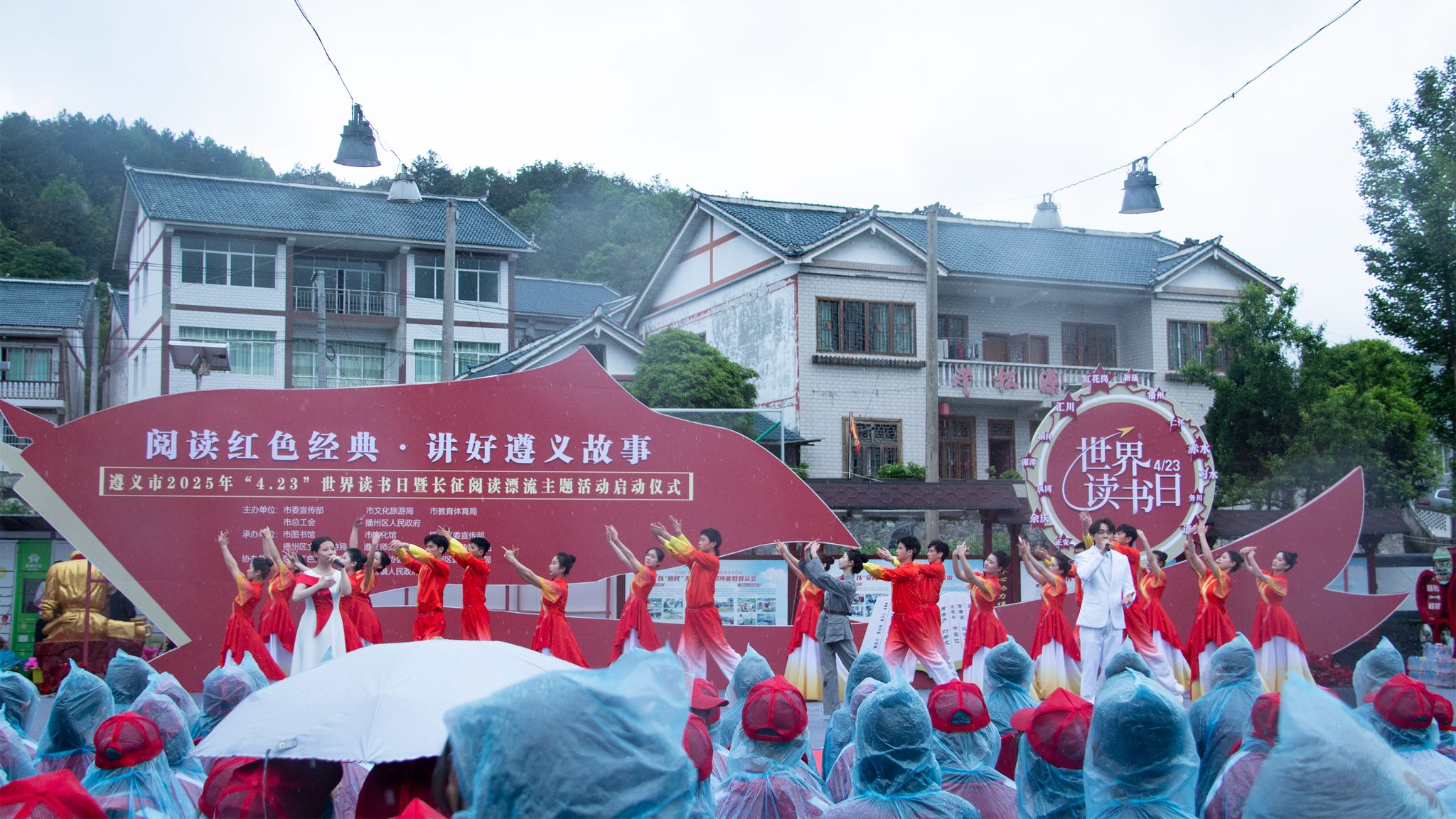 本网讯(文/陈玉霞 图/杨丹) 4月23日,由中共遵义市委宣传部、遵义市文化旅游局等单位联合主办,beat365亚洲版官网承办的“阅读红色经典·讲好遵义故事——遵义市2025年‘4·23’世界读书日暨长征阅读漂流”主题系列活动在红色热土花茂村盛大启幕。活动以“青山怀国志,绿水诉忠心”为序,通过艺术与阅读的交织,带领观众在黔北大地厚重的红色记忆中开启一场跨越时空的精神之旅。beat365亚洲版官网音乐与舞蹈学院学生以原创歌伴舞节目《追寻》倾情献演,为活动注入青春力量。