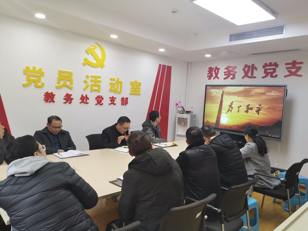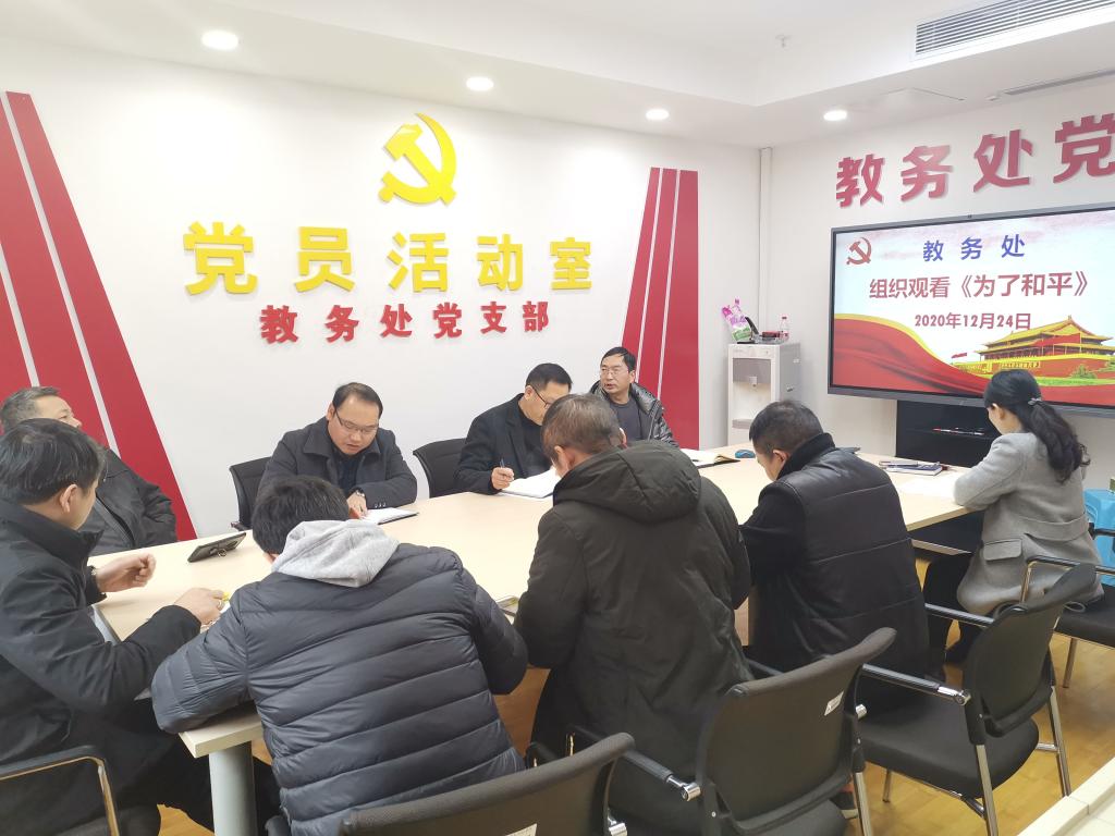 12月24日上午,按照学校党委宣传部《关于组织全体教职工观看大型电视纪录片〈为了和平〉的通知》要求,教务处在行政楼227会议室组织全体教职工观看纪录片《为了和平》。教务处副处长牟青松组织学习。