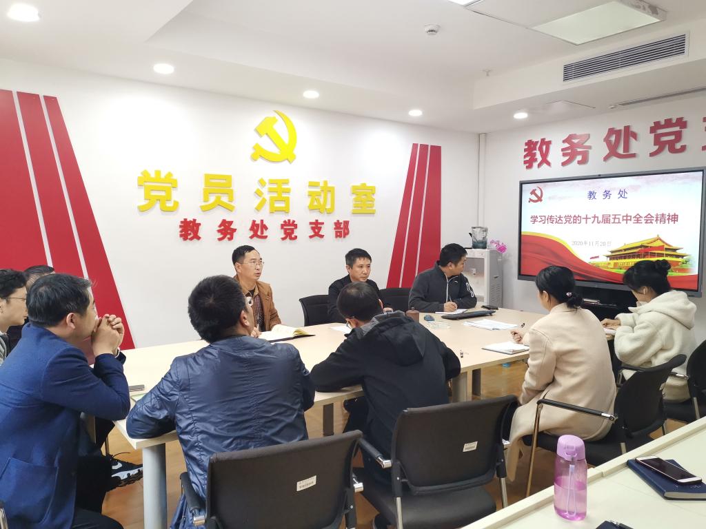 11月20日上午,教务处在行政楼227会议室召开理论学习会,主题为:传达学习党的十九届五中全会精神。教务处副处长陈华仕主持会议,全体教职工参加学习。