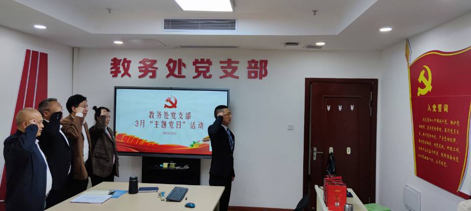 2021年4月2日,教务处党支部在教务处党支部党员活动室(行政楼227会议室)组织3月“主题党日”活动。教务处、教学质量监测与评估办公室、实验教学中心全体党员同志参加。会议由教务处党支部书记吴波同志主持。