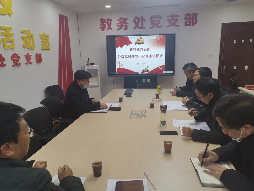 2021年1月27日上午,教务处在行政楼227党员活动室召开2020年度处级党员领导干部民主生活会。学校第八指导督导组督导员张乔到会指导,支部副书记陈华仕主持会议,教务处处级党员领导干部及支部委员会成员列席会议。