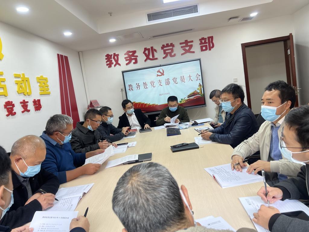 2022年11月25日上午11:20,教务处党支部在行政楼227会议室召开党员大会,会议由教务处党支部书记、教务处处长吴波主持,教务处党支部全体党员参加会议,教学质量监测与评估办公室主任牟青松列席会议。