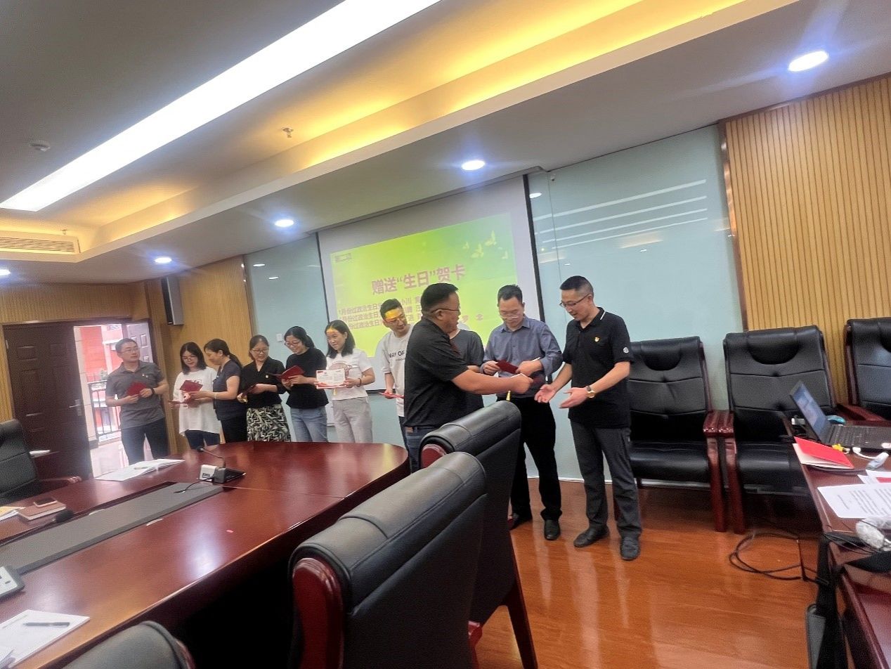 其次,由吴波同志为黄川腾等12位同志过“政治生日”,分别赠送生日贺卡,带领大家重温入党誓词,合唱《没有共产党就没有新中国》。