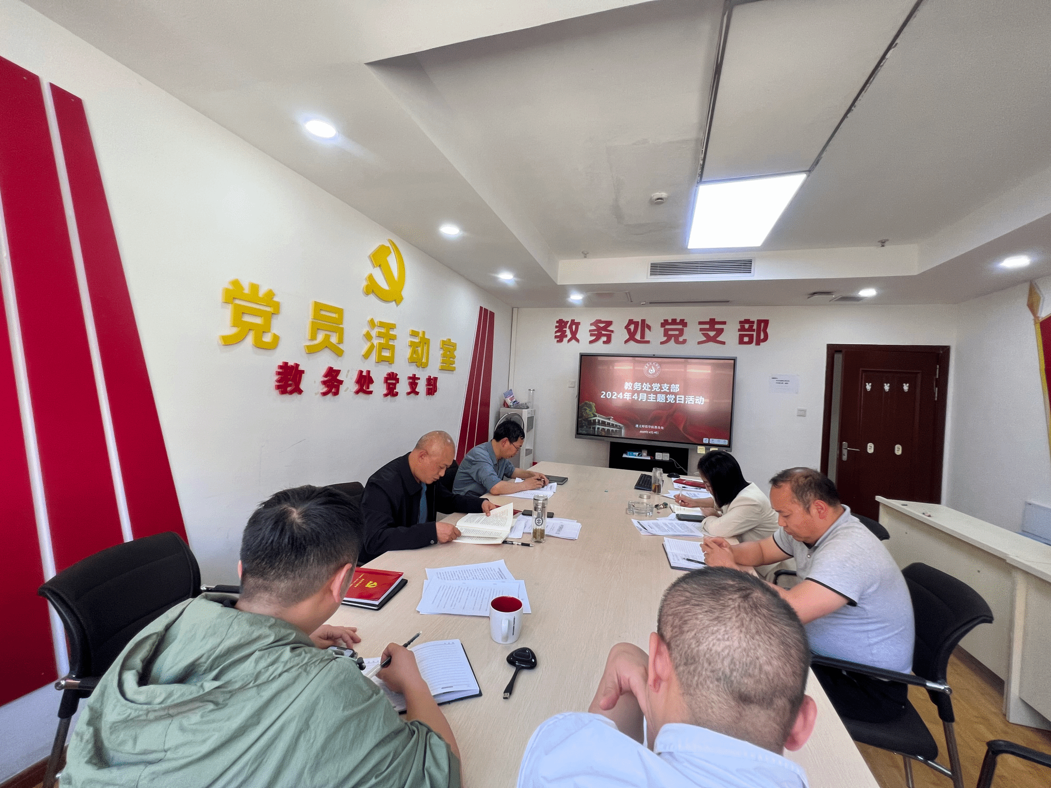 2024年4月19日下午,教务处党支部在行政楼227会议室开展四月政治理论学习,党纪学习教育暨主题党日活动,教务处党支部副书记张远强主持活动。会议分三个阶段进行,第一阶段教务处党支部(教务处、教学质量监测与评估办公室)全体教职工参加,第二、三阶段教务处党支部全体党员参加。
