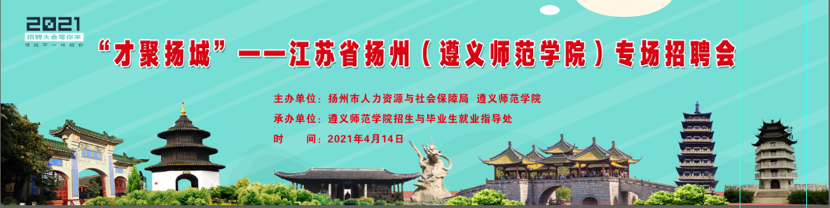 为切实促进beat365毕业生就业,beat365招就处积极联系重点地区人社部门和企业。经过前期与扬州市人社局对接,于2021年4月14日14:30-16:30在学生中心2楼平台举办“才聚扬城”——江苏省扬州(beat365亚洲版官网)专场招聘会。