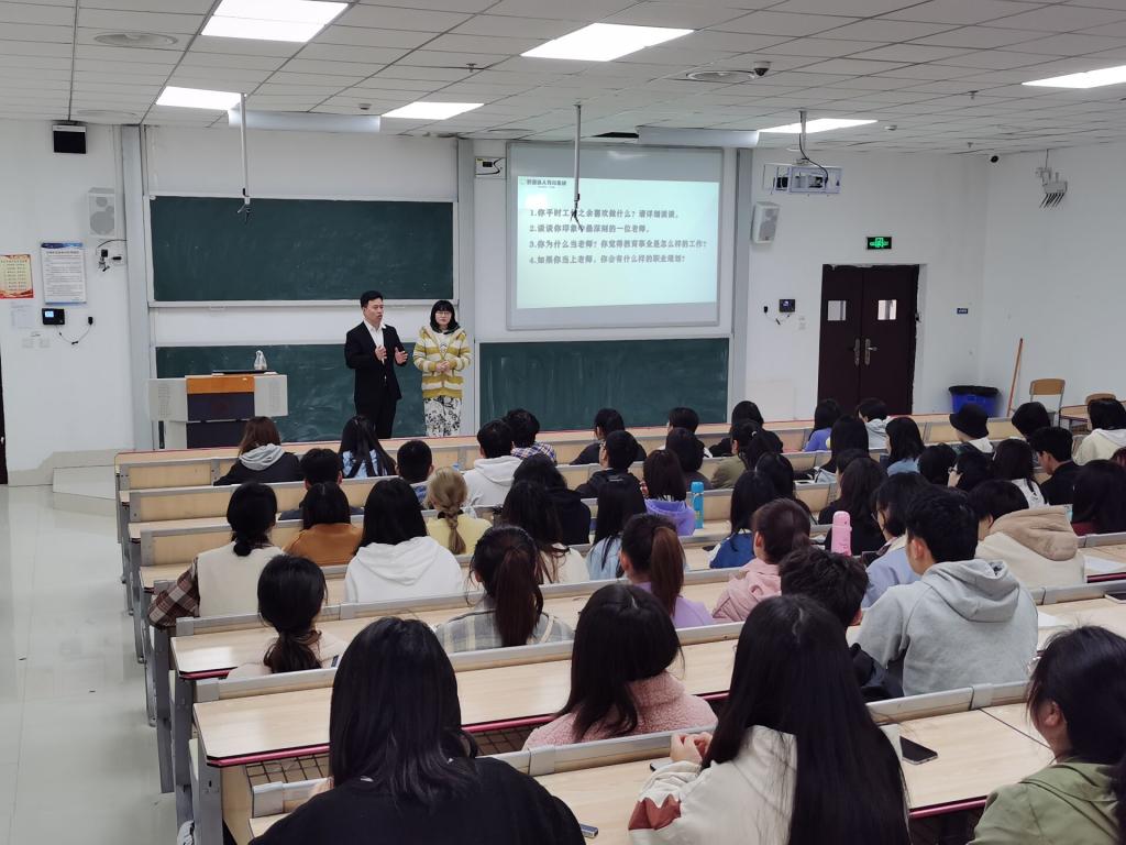 讲座在执闳楼103、206教室分两个会场进行,参会学生270余人,讲座讲解了结构化面试流程、礼仪、题型、作答技巧和求职准备,并通过现场互动模拟面试考场,加深学生体会,反响良好。
