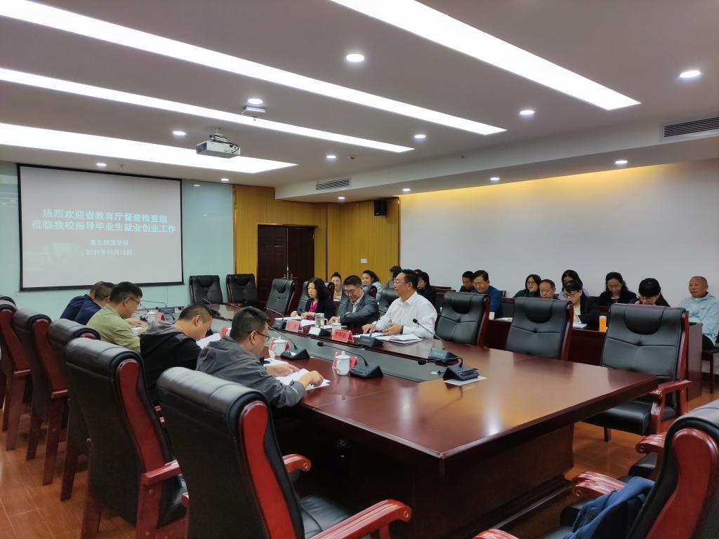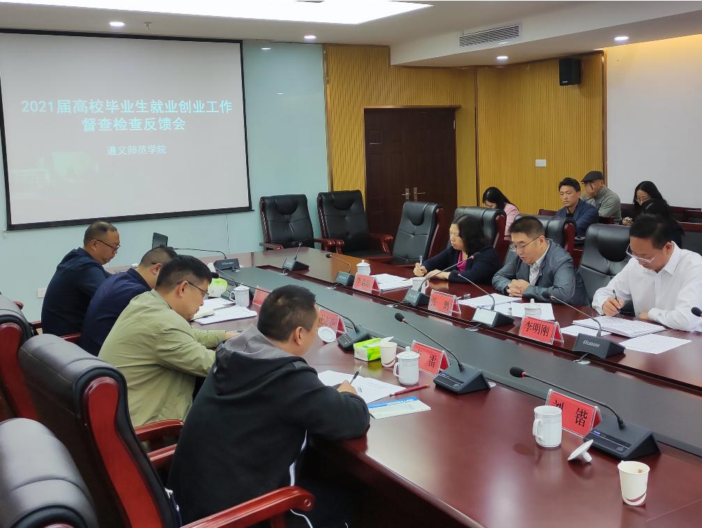 上午9:00,在beat365亚洲版官网行政楼322会议室召开了beat365亚洲版官网2021年就业创业工作督查检查汇报会,会议由招生与毕业生就业指导处处长李明刚主持。参会人员包括贵州省教育厅2021年毕业生就业创业工作督查检查第三组的领导和专家;beat365亚洲版官网招就处全体人员;beat365亚洲版官网各二级学院党总支书记或副书记、就业创业工作联络员。beat365亚洲版官网副校长张鹏出席会议。会议首先由督查检查组组长王志亮同志介绍督查检查的目的、背景和要求;然后,张鹏副校长代表学校向专家组汇报了beat365亚洲版官网2021届毕业生就业创业工作。