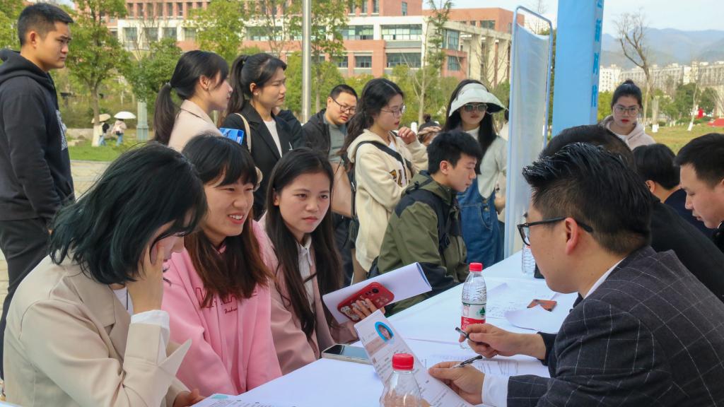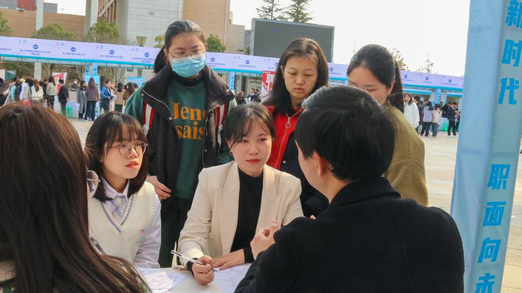 在招聘现场,毕业生积极向各用人单位递上简历,与招聘人员沟通交流,询问招聘详情。化学化工学院应届毕业生李世禹说:“这次招聘会为我们提供了一个了解企业、与社会近距离接触的机会,也让我对向往的岗位有了更明确的奋斗方向。”