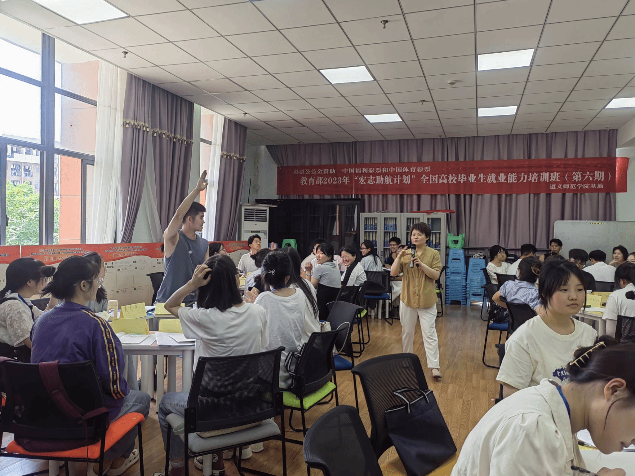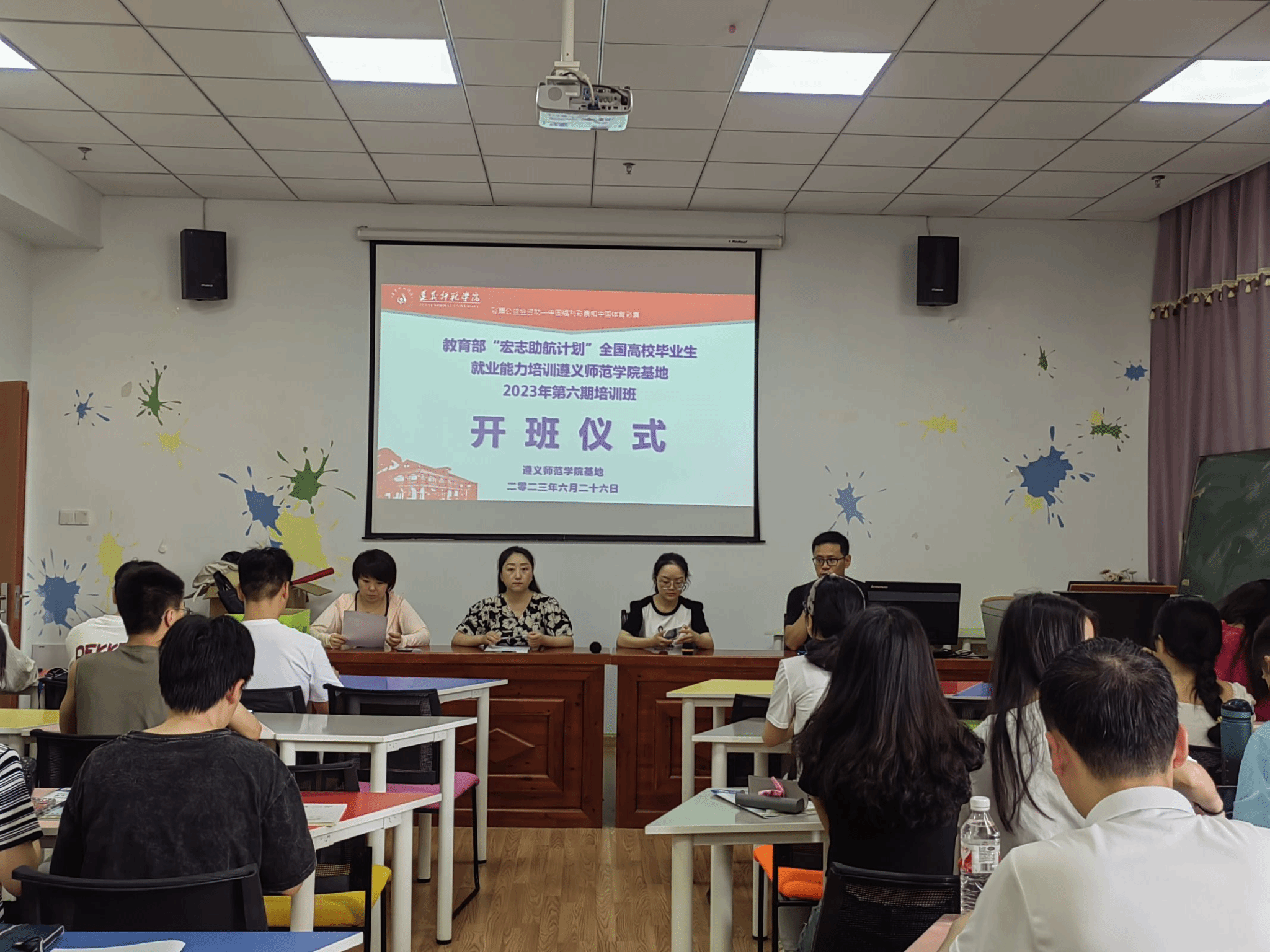 beat365亚洲版官网全国高校毕业生就业能力培训基地2023年第六期培训班于6月26日上午在beat365亚洲版官网学生中心201教室举行开班仪式。学校招就处处长李静发表动员讲话,招就处就业科科长赵东波介绍“宏志助航计划”培训基本情况,培训班班主任程欢宣布培训期间班级管理规定。