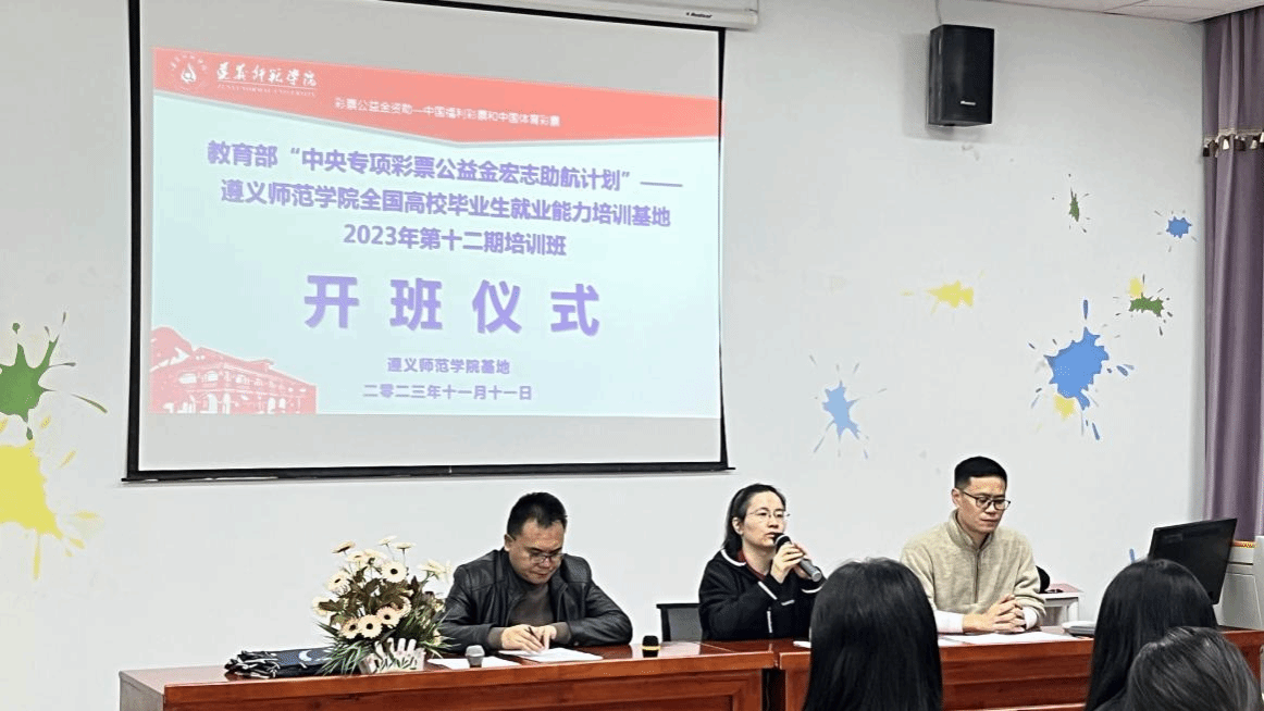 beat365亚洲版官网全国高校毕业生就业能力培训基地2023年第十二期培训班于11月11日上午在beat365亚洲版官网学生中心大楼201教室举行开班仪式。招就处就业科科长赵东波主持开班仪式,招就处副处长罗洋介绍“宏志助航计划”培训基本情况,培训班班主任詹剑宣布培训期间班级管理规定。