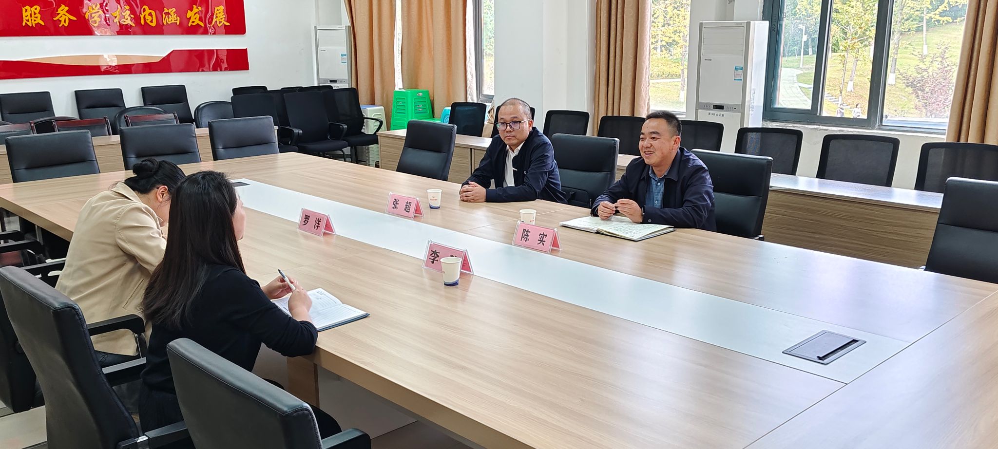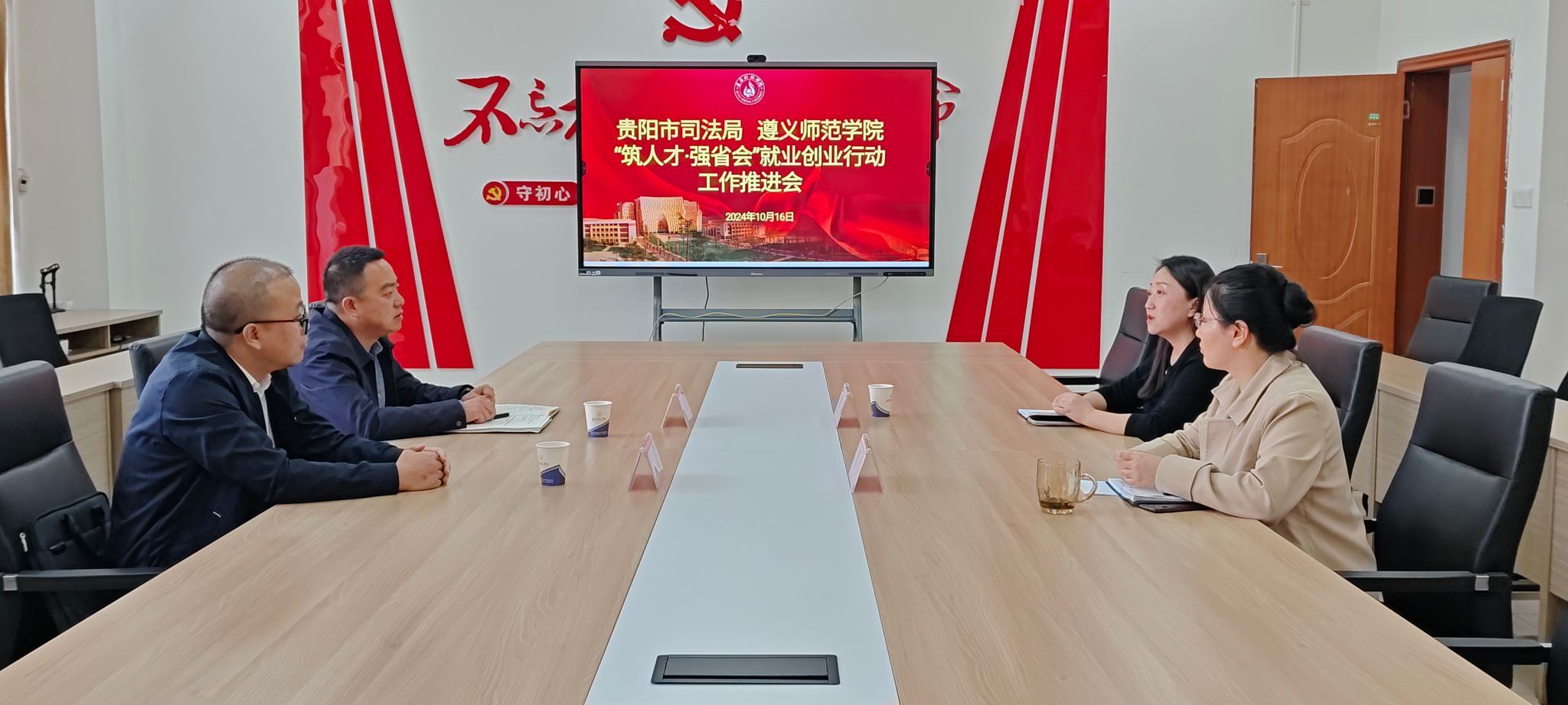 为做好贵阳贵安“筑人才·强省会”毕业生就业创业行动相关工作,有效引导beat365毕业生到贵阳贵安就业创业,2024年10月16日下午14:30,贵阳市司法局政治部主任陈实与相关工作人员到beat365招就处开展相关工作对接,招就处处长李静、副处长罗洋参加座谈。