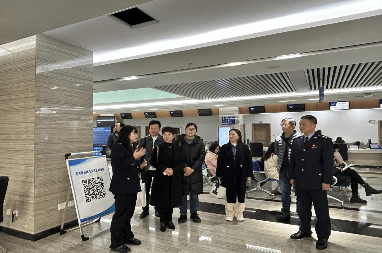 在副局长李永生的带领下,与会人员一同前往遵义国家经开区税务局一楼智能化自助办税厅和第一税务局(办税服务厅)调研了解实践、实习、就业场所。