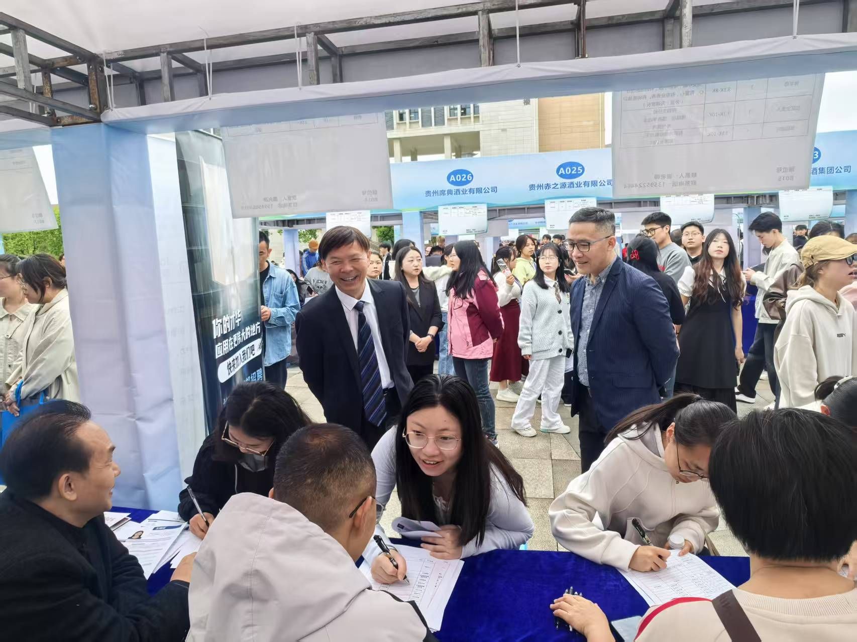 为贯彻落实“春季促就业攻坚行动”,以及人社部“高校毕业生春季专场活动”工作部署,推动学校与贵州酱酒产业产教融合、服务地方经济发展、促进毕业生高质量充分就业,4月23日,在贵州省酱酒产业产教联合体的关心和贵阳市司法局与遵义市人力资源和社会保障局、遵义市就业局等单位支持下,学校在星空广场成功举办“职引未来——2025年全国城市联合招聘高校毕业生遵义市春季专场活动”暨贵州酱酒产业产教联合体2025年beat365亚洲版官网专场招聘会。