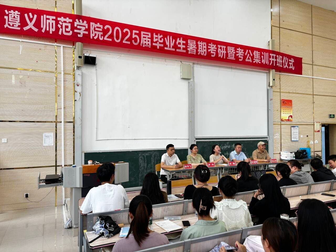 2024年7月15日,来自16个二级学院的300多名毕业生在执文楼119参加了开班仪式。招就处处长李静、副处长罗洋授课教师代表马山虎博士以及培训负责人出席仪式。