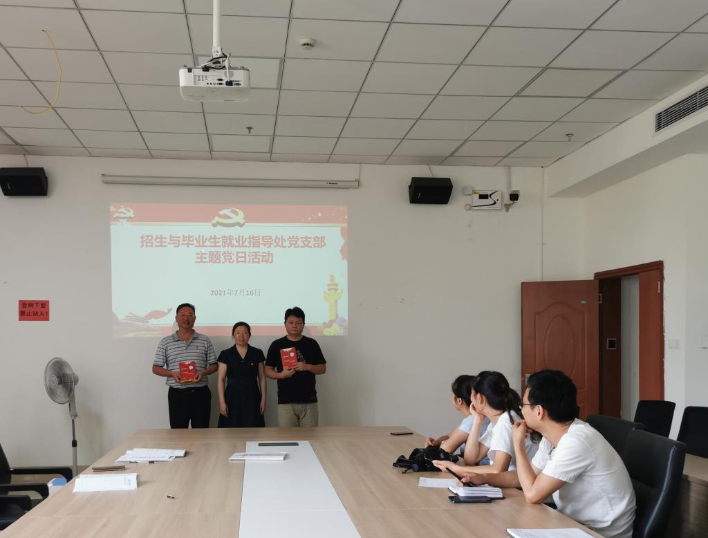 2021年7月16日,在学生中心418开展招就处主题党日活动,本次活动的主题是“庆祝建党百年,同过政治生日”,参加活动的人员包括招就处全体党员和非党员及借调人员。活动的内容主要包括: