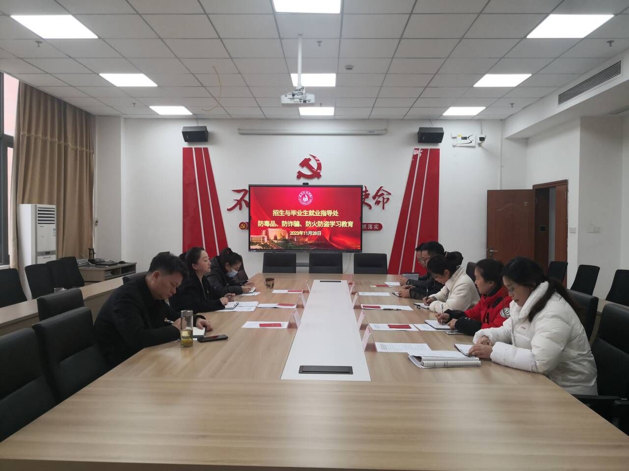 为了增强我部门教职工的禁毒、反电信诈骗、防火防盗意识,招生与毕业生就业指导处于2023年11月28日在学生中心大楼419会议室开展了防毒品、防诈骗、防火防盗等学习教育活动。招就处全体教职工参加,会议由李静处长主持。