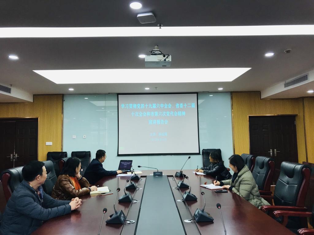 1月10日,离退休干部工作处党支部在行政楼322会议室开展学习贯彻党的十九届六中全会精神、省委十二届十次全会精神和市第六次党代会精神宣讲会,全体党员同志参加,非党员同志列席。