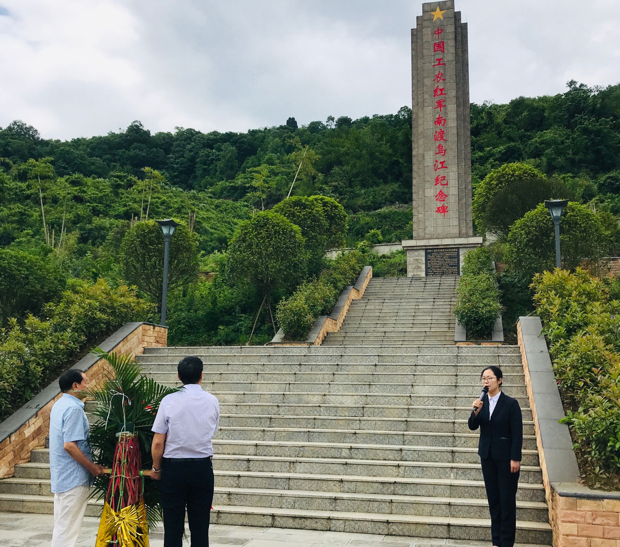 活动现场,讲解员倾情诵读“祭红军烈士文”,并用穿越时空的方式讲述了中国工农红军在贵州的革命历史,从初入贵州,到黎平会议、突破乌江、遵义会议、苟坝会议、娄山关大捷,再到四渡赤水、南渡乌江,一个个扣人心弦的红色历史故事不断震撼着大家。怀着崇敬的心情,全体党员向革命先烈敬献花篮、默哀致敬,瞻仰“龙潭三杰”之一钱壮飞烈士墓,深切缅怀革命先烈的丰功伟绩,追忆他们投身革命事业无畏牺牲的英雄壮举,表达对革命先烈的崇高敬意和无限哀思。在纪念碑前,通过重温入党誓词,表达不忘入党初心、牢记党员使命的坚定信心和决心。