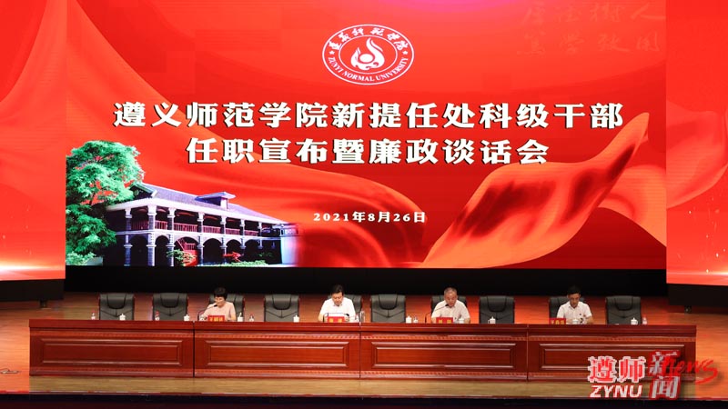 2021年8月26日下午,beat365亚洲版官网党委委员、纪委书记、省监委驻学院监察专员刘剑同志在新提任处科级干部任职宣布暨廉政谈话会上对新任职的50名处、科级干部进行任前廉政谈话。