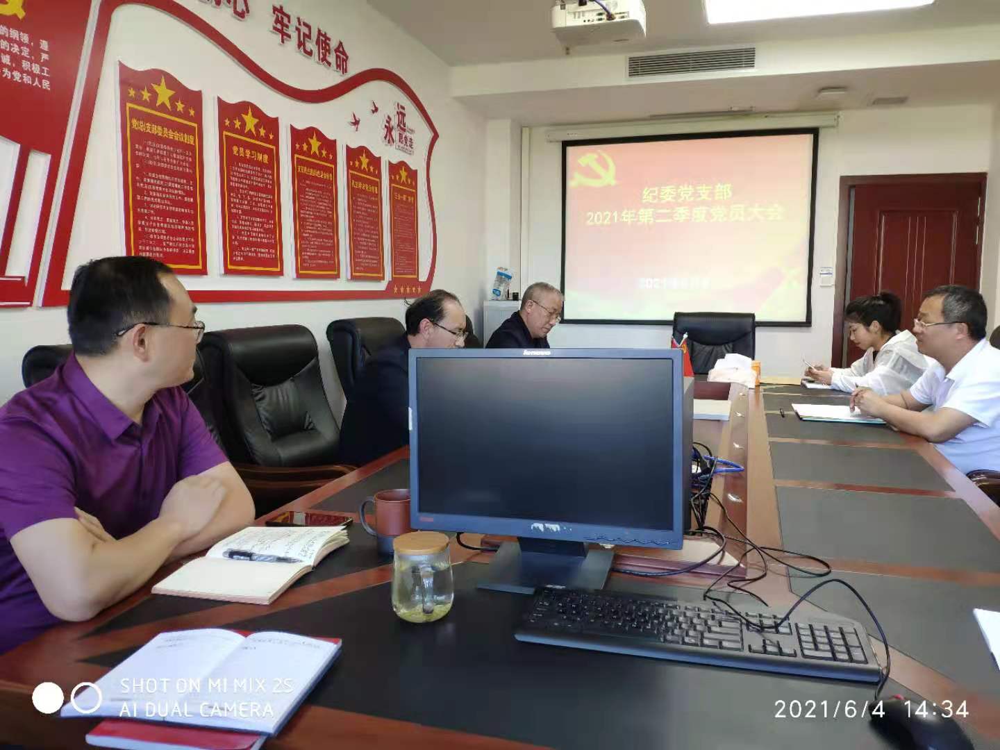 2021年6月4日,纪委党支部在行政楼413会议室召开党员大会,会议由党支部书记赵其普同志主持,纪委党支部党员同志参会。
