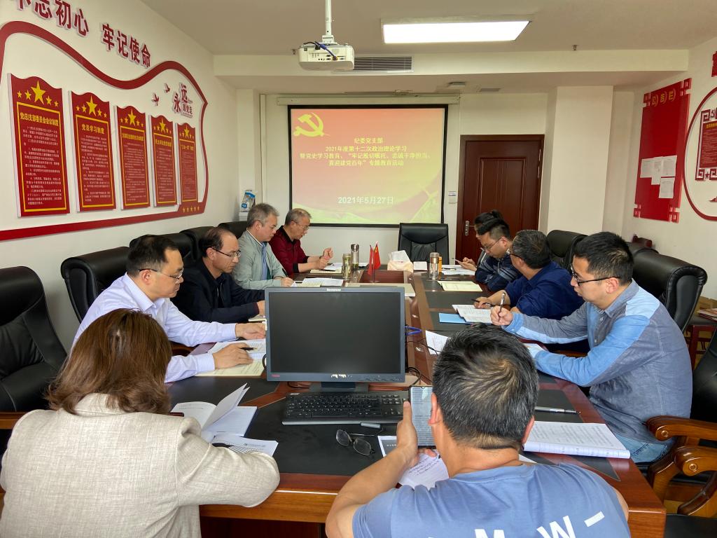2021年5月27日,纪委党支部在行政楼413会议室开展2021年第十二次政治理论学习暨党史学习教育、“牢记殷切嘱托、忠诚干净担当、喜迎建党百年”专题教育学习活动,纪委书记、监察专员刘剑同志及支部党员同志参加学习。