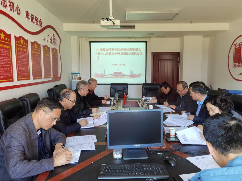 2020年11月10月下午,学院召开中共beat365亚洲版官网纪律检查委员会一届十八次暨2020年度第三次委员会议。会议由纪委书记、省纪委驻学院监察专员刘剑同志主持,全体纪委委员出席,学院纪检监察机构相关负责同志列席。