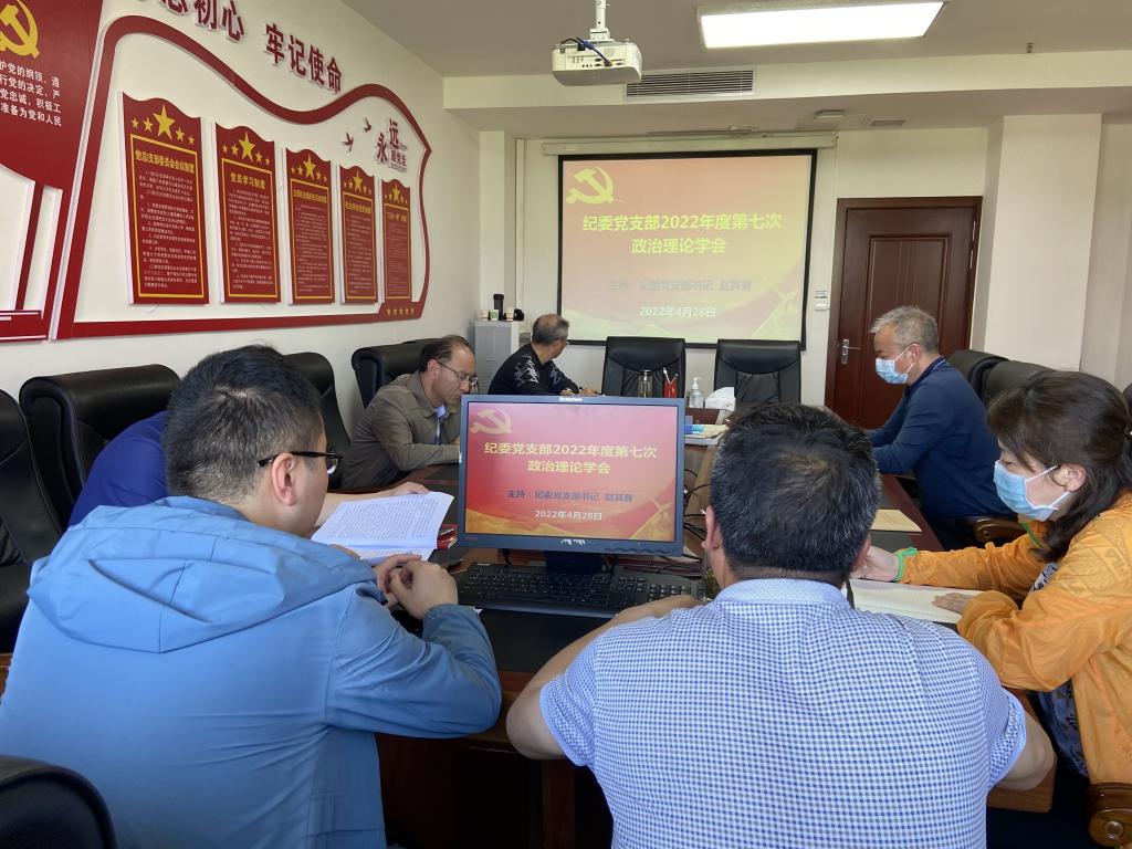 2022年4月28日,学校纪委、监察专员办于行政楼413会议室组织2022年第7次政治学习会。会议由纪委副书记赵其普主持,全体纪检监察干部参加。