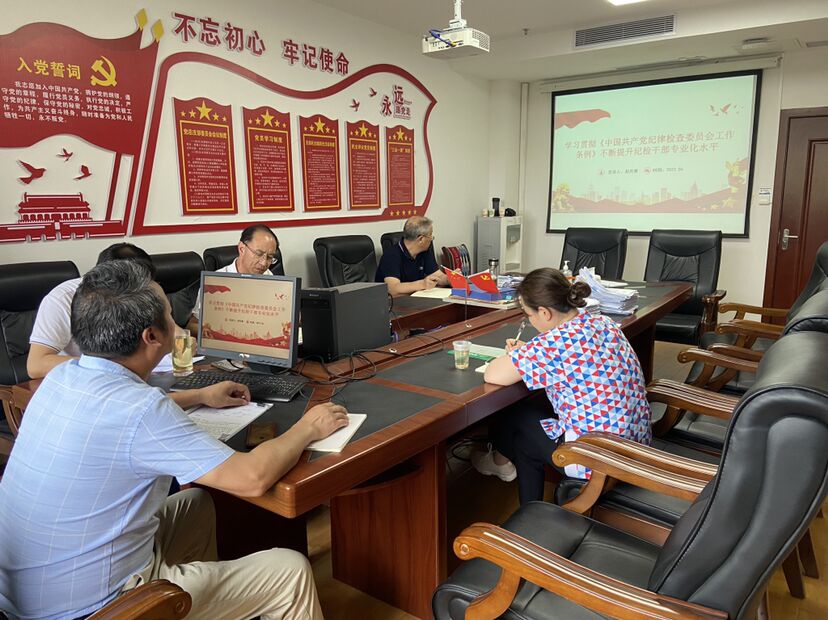 2022年6月23日下午,纪委党支部在行政楼413会议室组织2022年度第二次党课,授课人为党支部书记赵其普,题目为:《学习贯彻<中国共产党纪律检查委员会工作条例> 不断提升纪检干部专业化水平》。